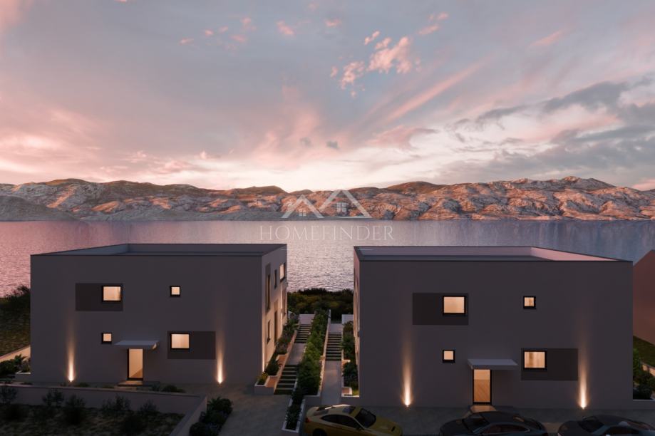 Na izuzetnoj lokaciji na otoku Pagu, na vrhu litice s otvorenim pogledom na more i planinu Velebit, prodaju se dva stana u prizemlju moderne vile s ukupno četiri stambene jedinice. Prednost ovih prizemnih stanova je direktan izlaz na prostranu terasu koja vodi do zajedničkog grijanog bazenom i pomno uređene zelene oaze – savršene za uživanje u mediteranskom ambijentu.