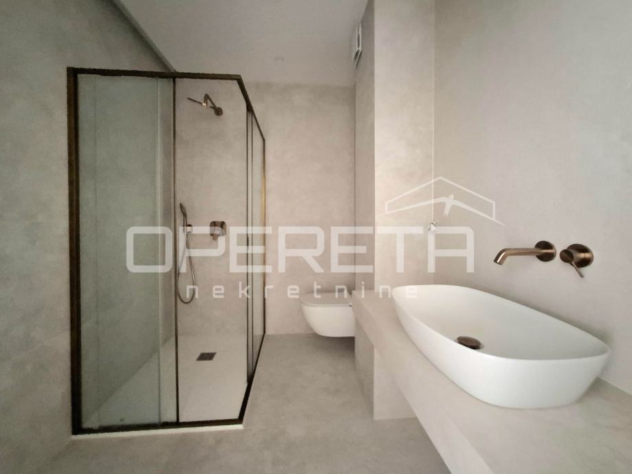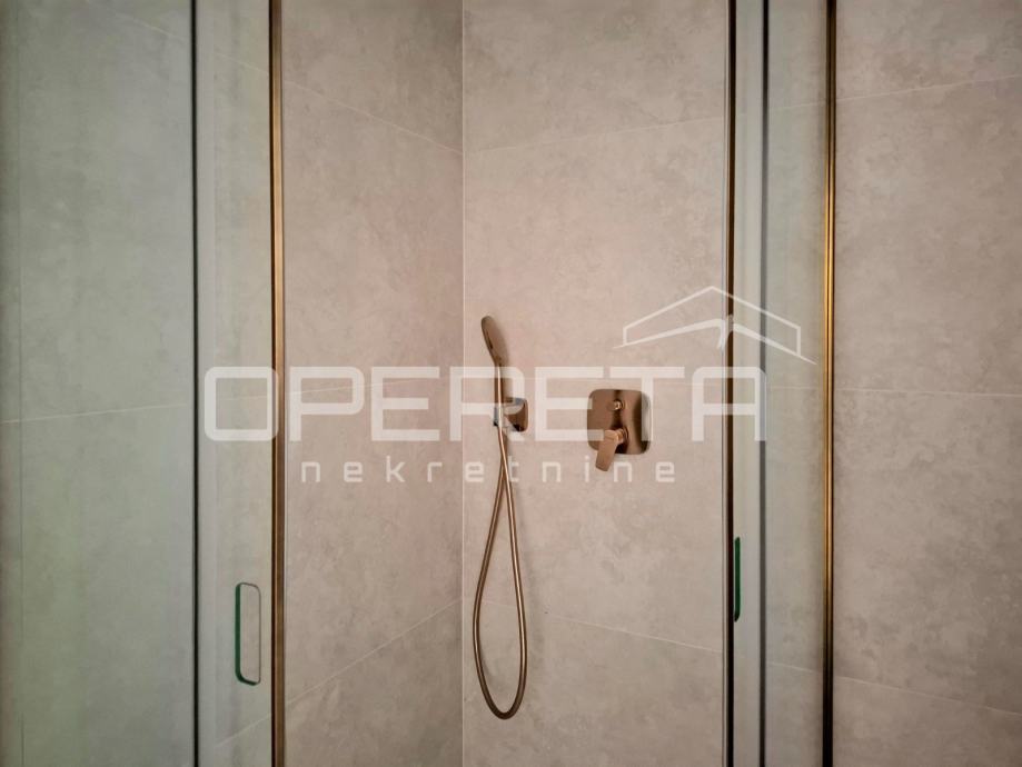 Kupaonice su uređene velikim porculanskim pločicama renomiranih proizvođača, s brončanim armaturama HANSGROHE, staklenim kliznim stijenkama INDA, akrilnim kadama od lijevanog kamena i podnim grijanjem kroz cijelu površinu, uključujući prostor ispod kade i tuša.