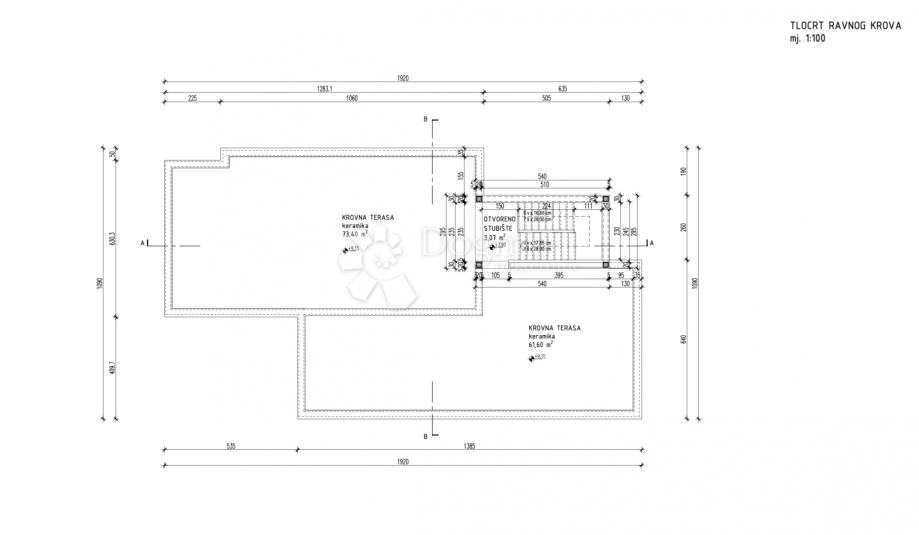 Prostire se na ukupnoj brutto površini od 146,50 m2, pri čemu stambeni dio zauzima 59,78 m2. Stanu pripada krovna terasa površine 73,40 m2.