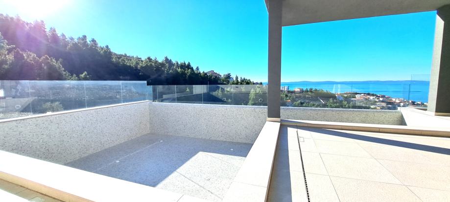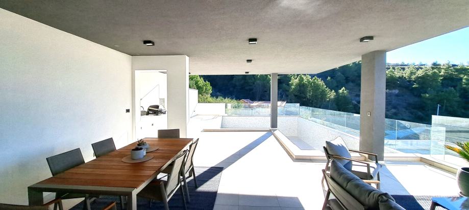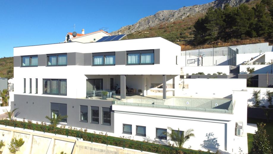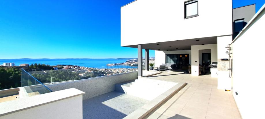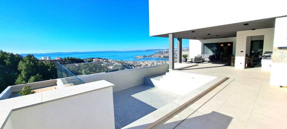 Okružena je sa potpuno i pažljivo uređenom okućnicom, što pruža privatnost za vrijeme uživanja na bazenu ili sunčalištu. Ljetna kuhinja i natkrivena terasa jamče opuštajući ugođaj tijekom cijele godine sa pogledom na more i na Split.