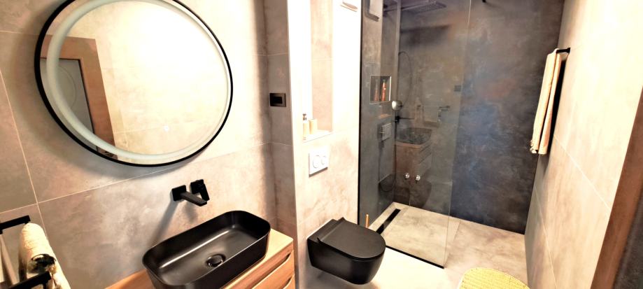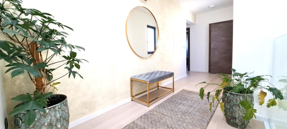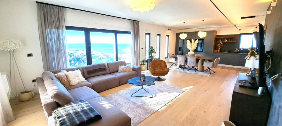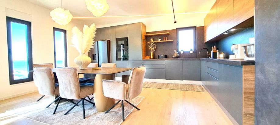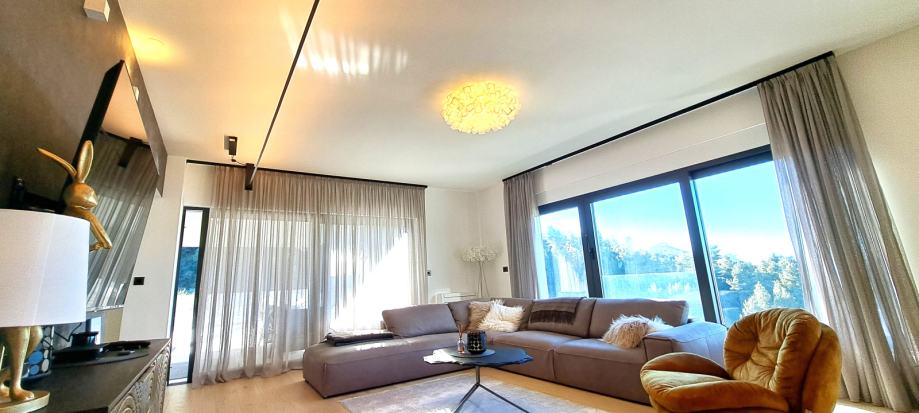 Interijer je opremljen namještajem i opremom najvišeg stupnja kvalitete te nudi maksimalnu udobnost i funkcionalnost, a velike staklene stijenke osiguravaju savršenu povezanost unutarnjeg i vanjskog prostora.