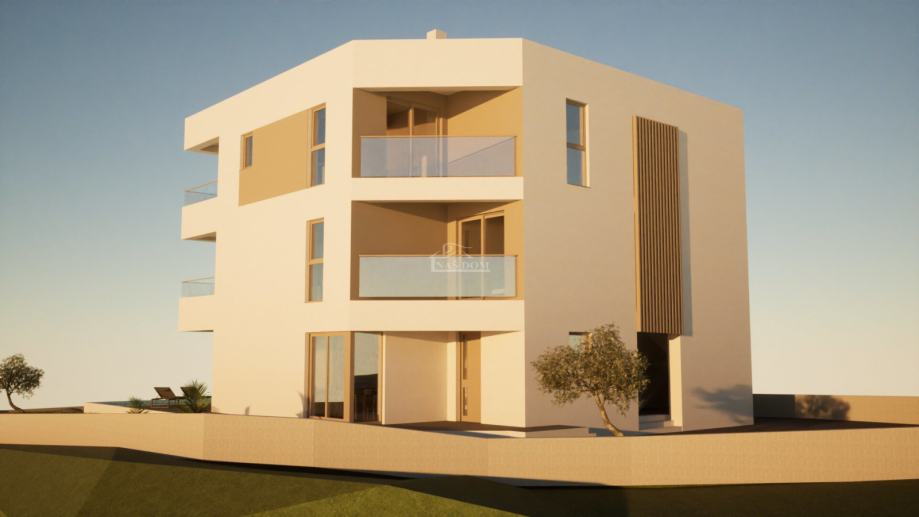 Predstavljamo novi projekt moderne stambene zgrade s ukupno četiri luksuzna stana, smještene na mirnoj i povišenoj lokaciji u Vodicama, 1200 metara od plaže Vruje i 1500 metara od centra grada.