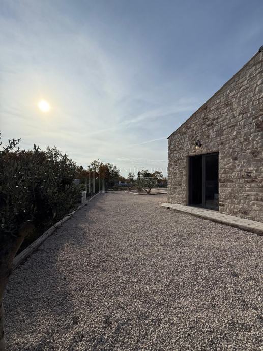 Na prodaju je ekskluzivna luksuzna prizemnica u Poljicama, okolici Zadra, smještena na velikoj parceli od 2.550 m² u mirnom okruženju izvan građevinske zone – što jamči apsolutnu privatnost i sigurnost okruženja.