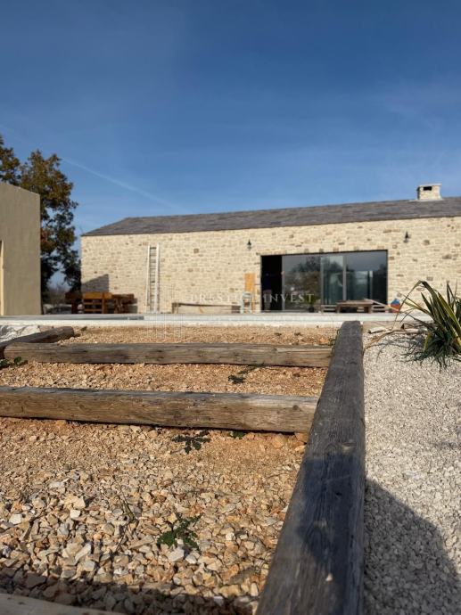 Okoliš je potpuno uređen: Rustikkamen betonske ploče Travertino 40×60 u bež tonu — izgled starog istarskog kamena.