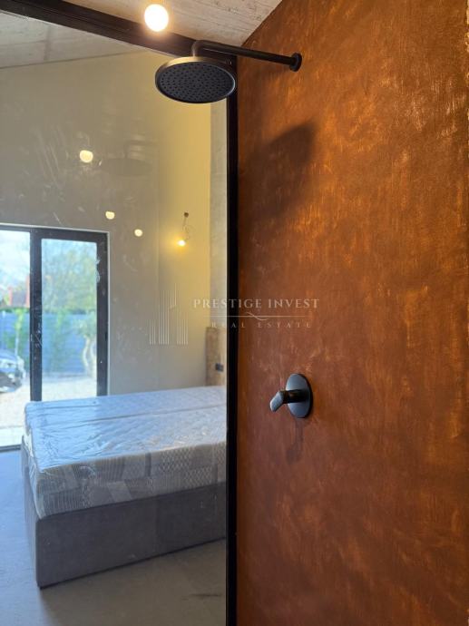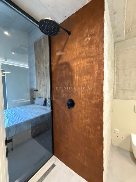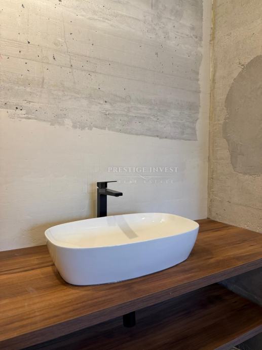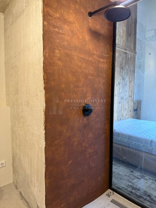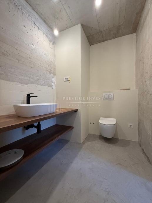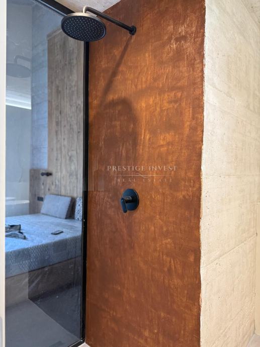 Unutrašnjost je kombinacija mikrocementa i brušenog betona, zaštićeno San Marco talijanskim premazaima.