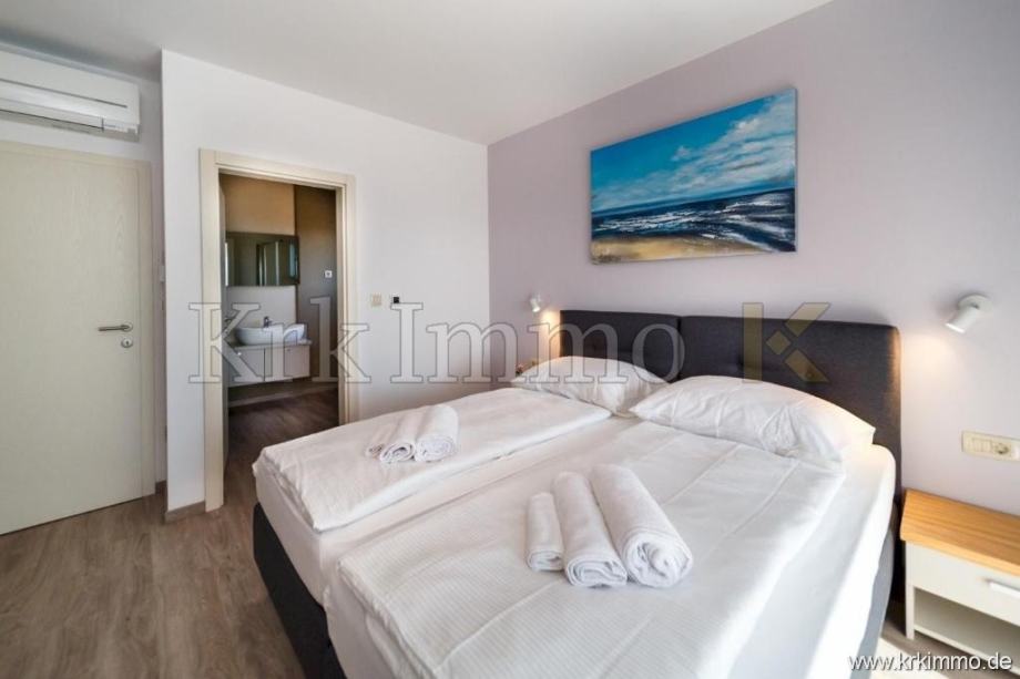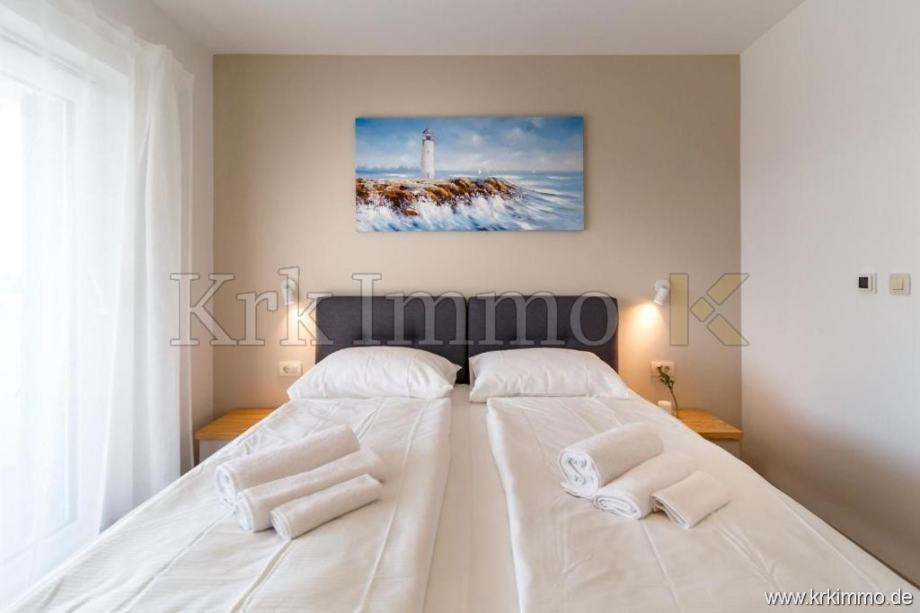 Unutarnje stepenice vode na prvi kat, gdje se nalaze tri luksuzne spavaće sobe, svaka sa svojom kupaonicom i izlazom na natkriveni balkon s pogledom na more.