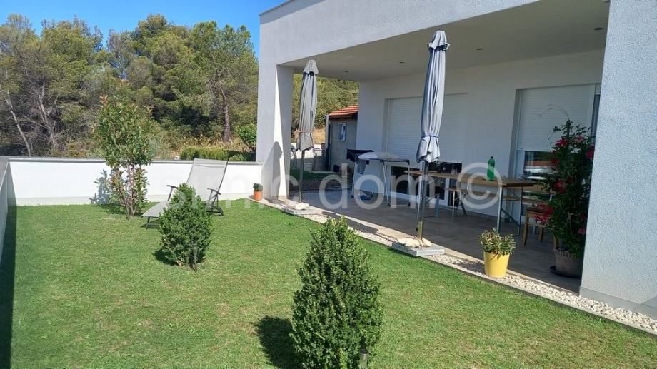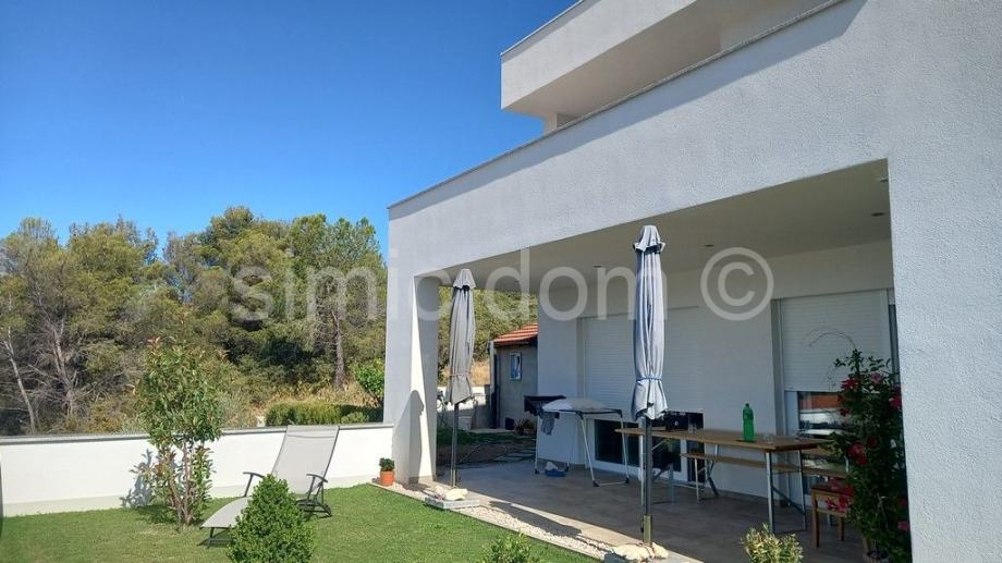 Posredujemo u prodaji luksuzne, novosagrađene vile koja se nalazi samo 15 minuta vožnje od bisera obale, Šibenika. Vila se nalazi na parceli od 580m2, a neto površina joj je 233m2. Sastoji se od suterena, prizemlja i kata. U suterenu se nalaze velika garaža te strojarnica. U prizemlju je vrlo prostran dnevni boravak, odvojena blagovaonica, kuhinja, spavaća soba, kupaonica, ostava (praonica) te dodatan toalet. Iz dnevnog se boravka izlazi na terasu, a u produžetku je i šarmantan, lijepo održavan vrt. Na prvom je katu još jedan stan koji ima dvije spavaće sobe, kuhinju, dnevni boravak, blagovaonicu, kupaonicu i toalet. Na ovom je katu također vrlo prostrana terasa. Iz cijele se kuće pruža prekrasan pogled na more i okolno područje. Vila je vrlo kvalitetno građena, opremljena i ugodno namještena. U cijeloj je vili podno grijanje, dok je na krovu solarni sustav. Dostupan je i prostran parkirališni prostor. Vila je okružena okućnicom s mediteranskim biljem, što dodatno doprinosi dojmu nekretnine idealne kao obiteljski dom, ali i kao nekretnine s mnoštvom potencijala za iznajmljivanje. Vlasništvo uredno.