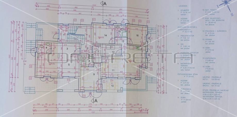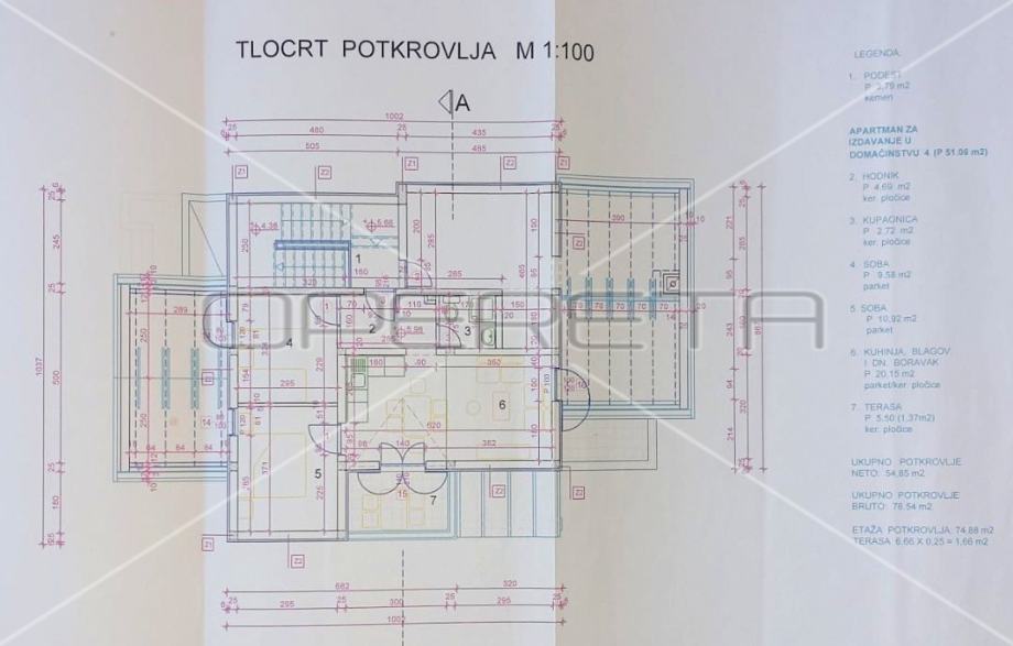 POTKROVLJE: dvije sobe, kupaonica sa wc-om i sauna sa kadom.