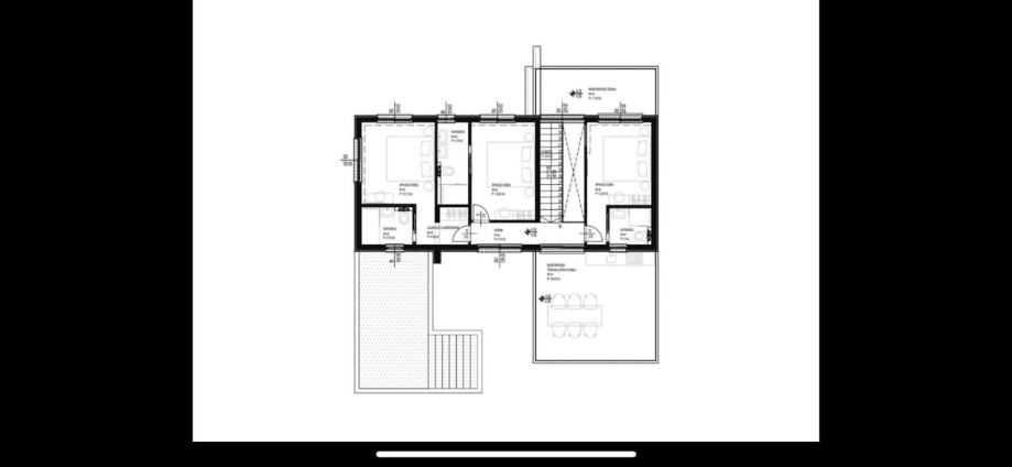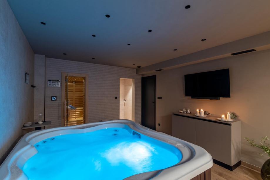 Sastoji se od 3 etaže , u prizemlju su welness sadržaji : jacuzi sauna lounge i praonica, u prizemlju je boravak kuhinja i wc, a na 2 etaži 3 spavace sobe s kupaonicama.