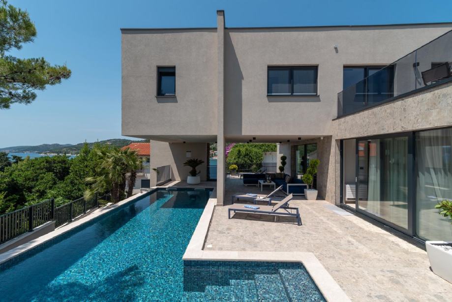 Prodaje se potpuno nova vila s bazenom na odličnoj lokaciji u trećem redu do mora u Seget Vranjici.