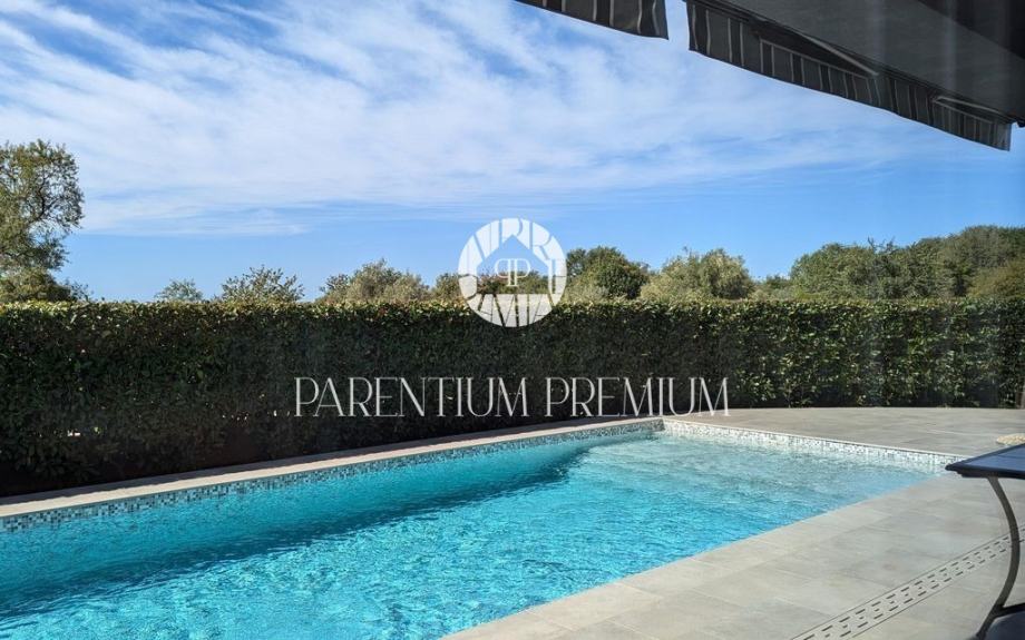 Vanjski prostor osmišljen je za potpun užitak, bazen okružen terasom i sunčalištem, natkrivena terasa za objedovanje na otvorenom te roštilj.