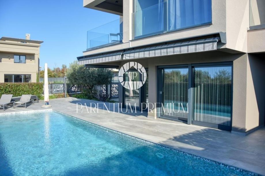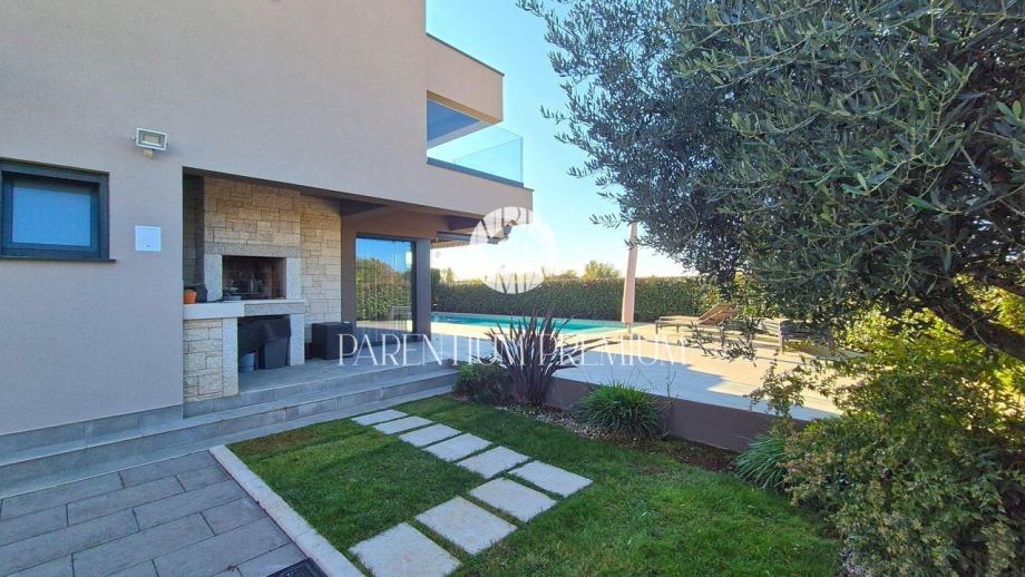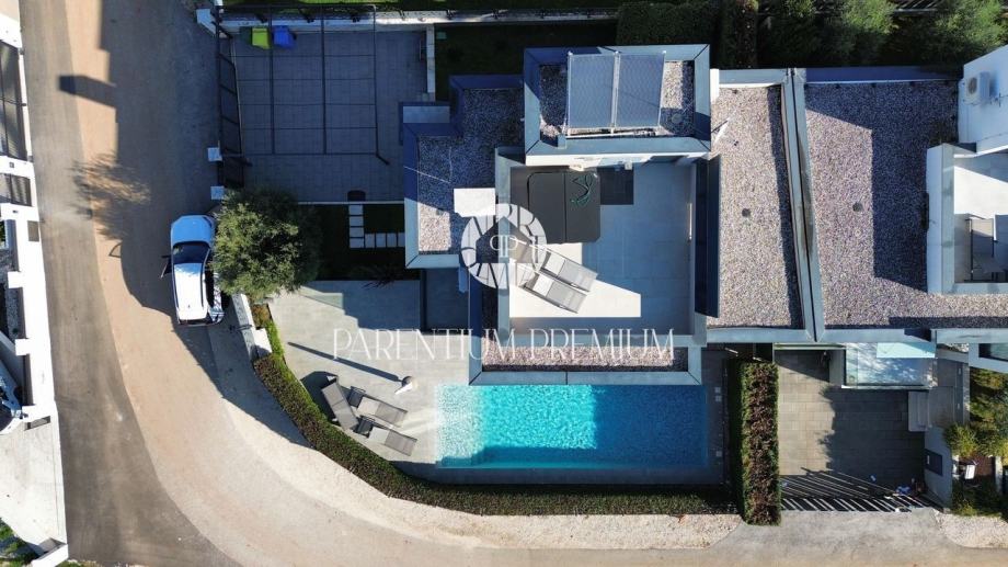 Prodaje se moderna luksuzna kuća smještena na izuzetnoj lokaciji, svega 500 metara od prvih lijepih plaža i 1,4 kilometra od centra Poreča. Kuća ukupne površine 250 m² smještena je na zemljištu od 393 m².