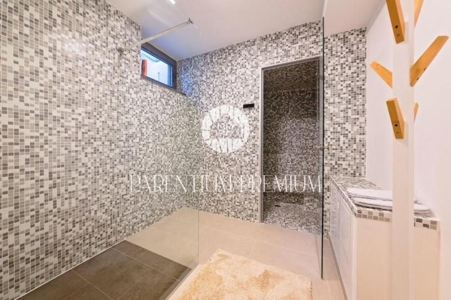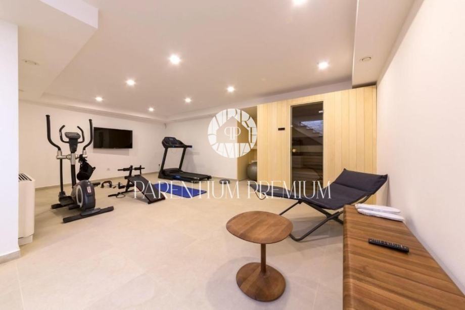 U suterenu se nalazi prostor za wellness, opremljen saunom, tušem i potpuno opremljenim fitness dijelom, što kuću čini pravim utočištem za odmor i regeneraciju.