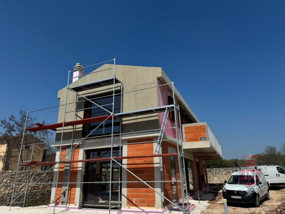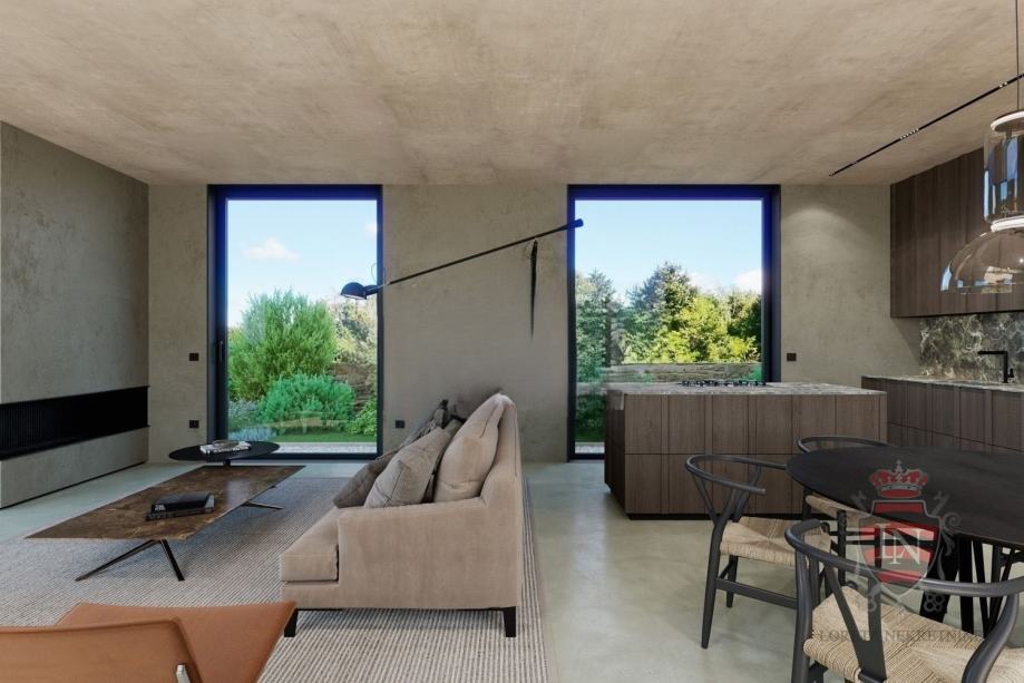 A specially prepared horticultural environment of Mediterranean plants and a lawn whose lush greenery is provided by an automatic irrigation system . The specific interior design is marked by the light color of the walls with natural materials such as natural Istrian stone and wood , and the floor is covered with high -quality parquet and microcement . The owner of the property under construction is a legal entity in the VAT system and it is possible to deduct it .