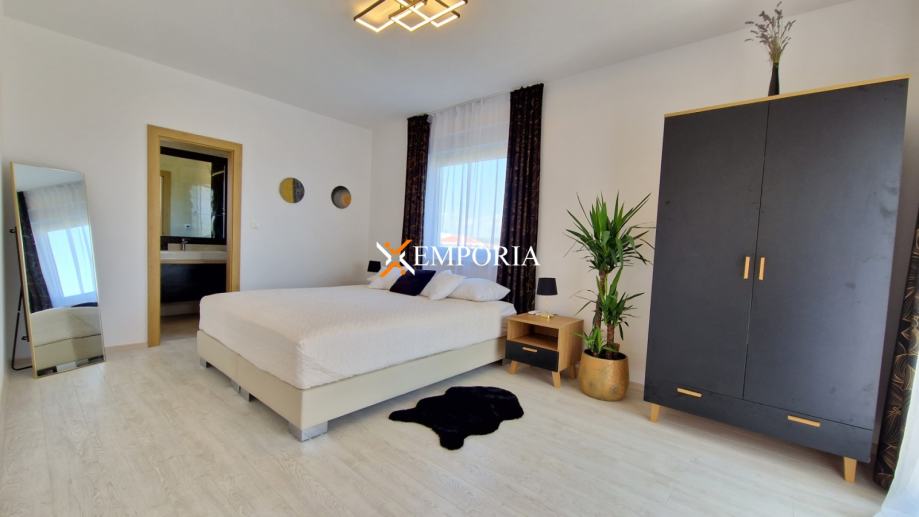 Gradnja ciglenim termo blokom. Termoizolacija fasade je izvedena s 10 cm stiropora. Podne obloge su pločice i laminat. Prozori su od PVC materijala s roletama i komarnicima. U kući je 5 klima uređaja. Po jedan uređaj je u svakoj sobi i dnevnom boravku. U kupaonicama, dnevnom boravku, kuhinji i blagovaonici je postavljeno podno grijanje. Ulazna vrata kuće su protuprovalna.