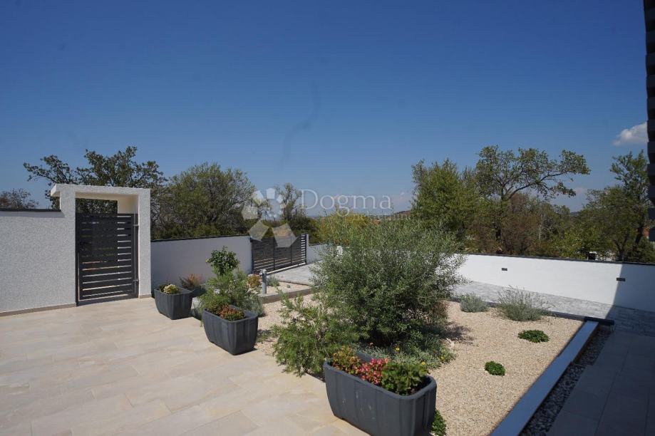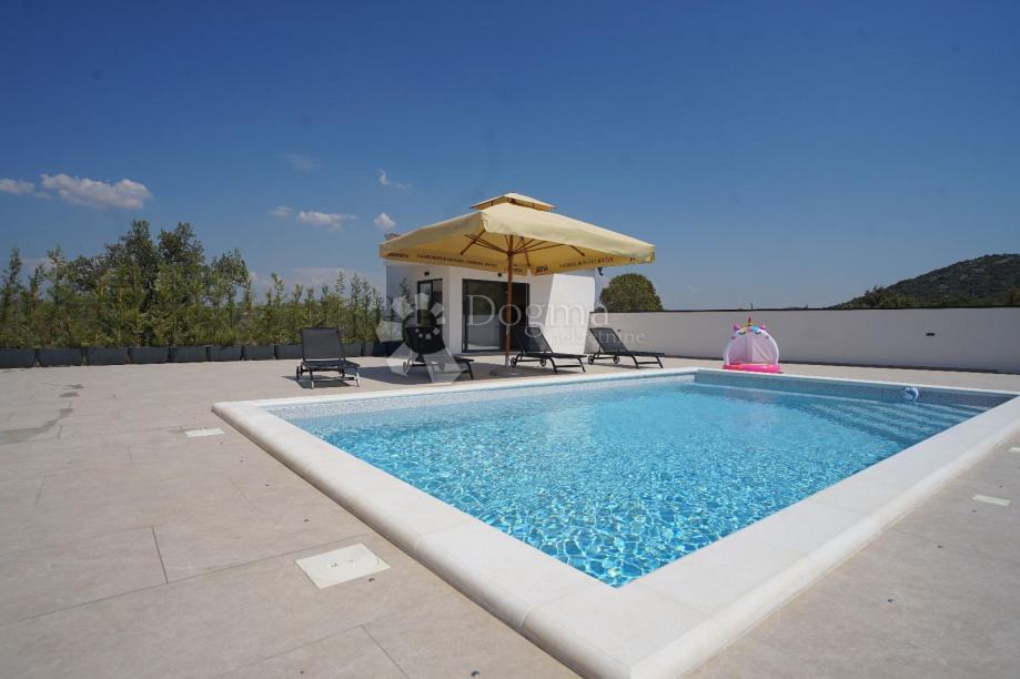 Vila je izgrađena na parceli od 789 m², a zajedno s pratećim zemljištem čini cjelinu od 5.000 m². Objekt je izveden kao visoka prizemnica s vrhunskim materijalima, uređena za vlastito uživanje i spremna za useljenje.