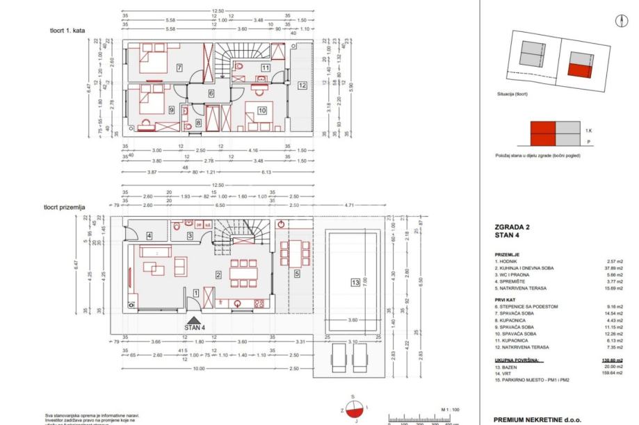 Veličina vile: 128,88 m²Veličina parcele: 350 m²Veličina bazena: 21,00 m²Privatni pristup parceliPočetak izgradnje: svibanj 2024., završetak: kraj 2025