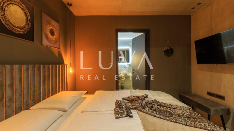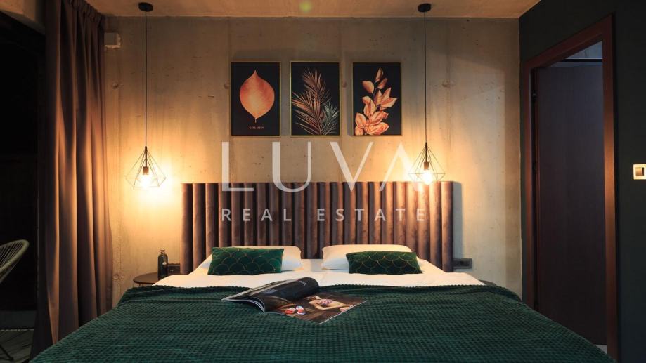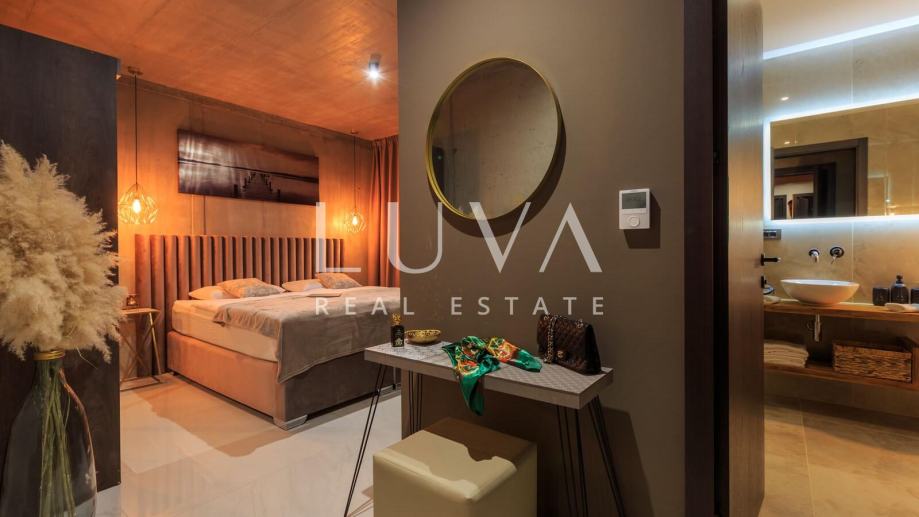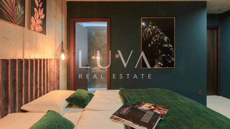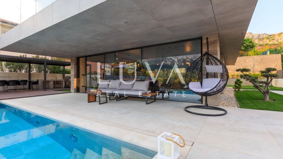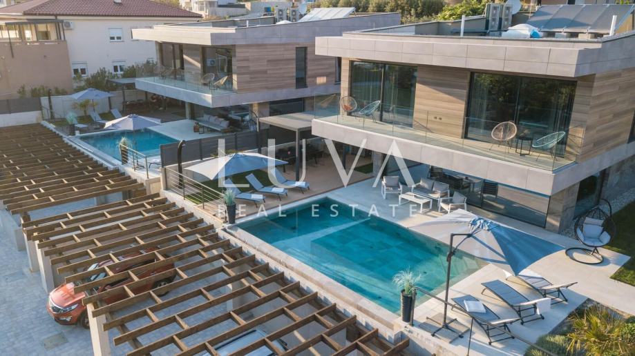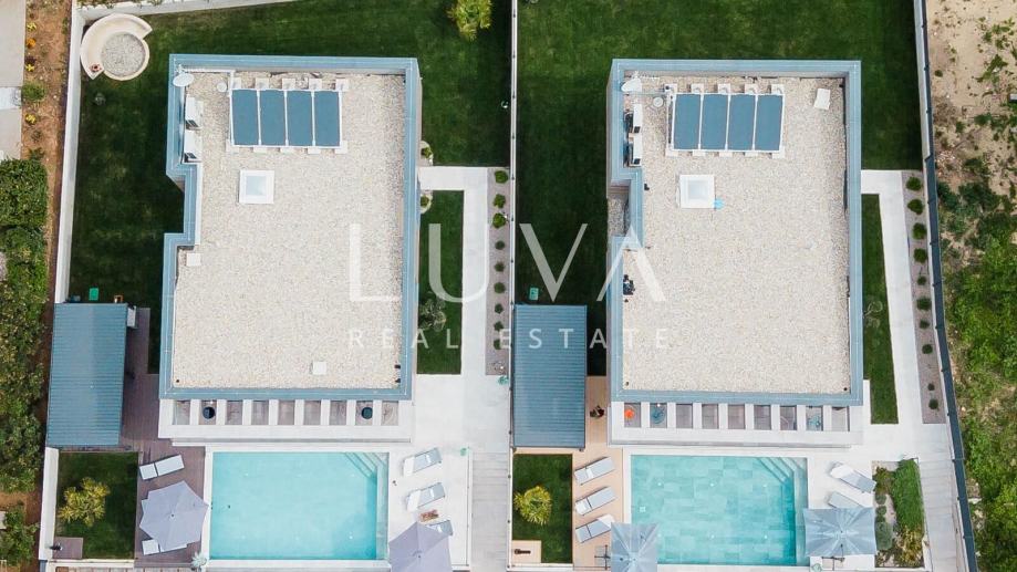 Ispred vile se nalazi vanjski grijani bazen okružen ležaljkama i lounge foteljama, a vila ima i osiguran parking za 4 vozila. Vila se prodaje kompletno opremljena te je trenutno u funkciji turističkog najma tako da postoji mogućnost preuzimanja uhodanog posla iznajmljivanja, a odmah do vile se nalazi sestrinska vila te je moguća kupnja obje vile zajedno.