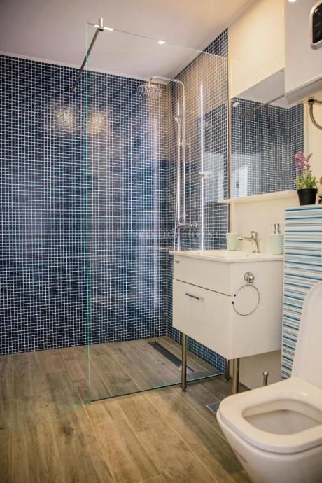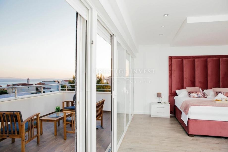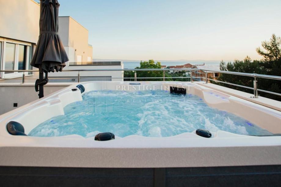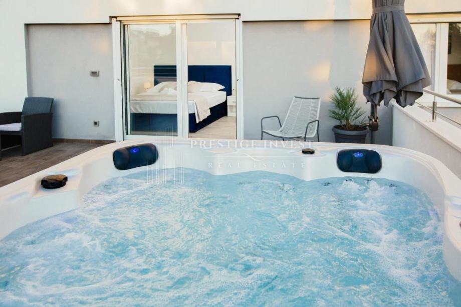 Ova luksuzna Vila moderno je opremljena s klimatiziranim prostorom uz WiFi, privatnim parkingom, jacuzzi-em na balkonu te teretanom koje sveukupno olakšavaju I upotpunjuju vaš boravak.
