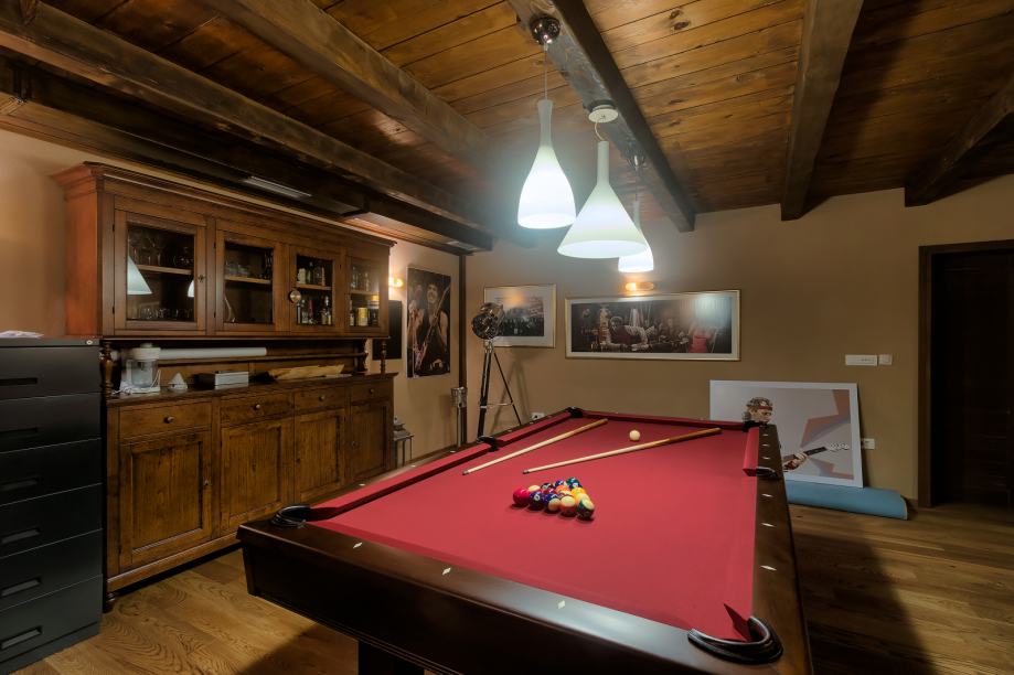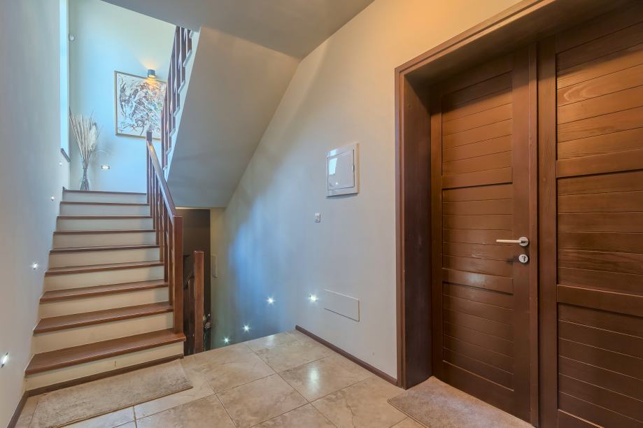 Ulazak u vilu vodi vas kroz prekrasan vrt prema ulazu u oazu mira i neoklasičnog stila. Prostrani interijeri na prizemlju i katu omogućuju udobnu organizaciju. Vila sadrži ukupno četiri prostrane sobe, uključujući tri spavaće sobe, te četiri moderne kupaonice, dizajnirane za maksimalni komfor. Vila u podrumu ima prostor za druženje opremljen biljarskim stolom.