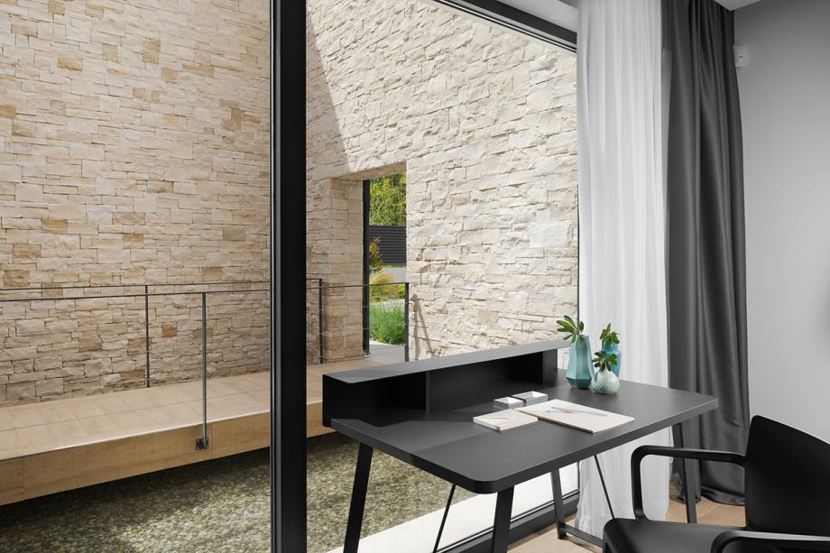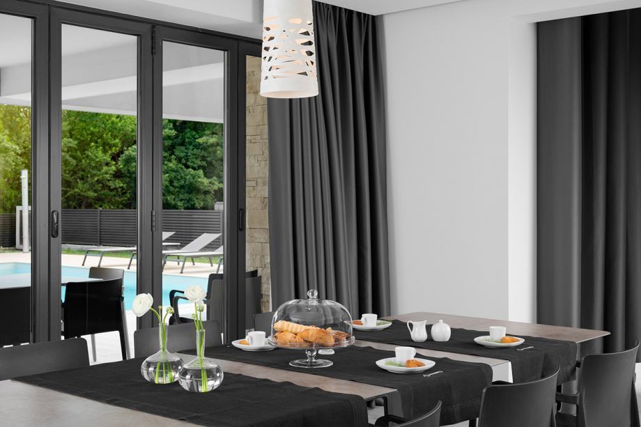 Vila nudi velike svijetle prostore koji skladno integriraju unutarnje i vanjske prostore.