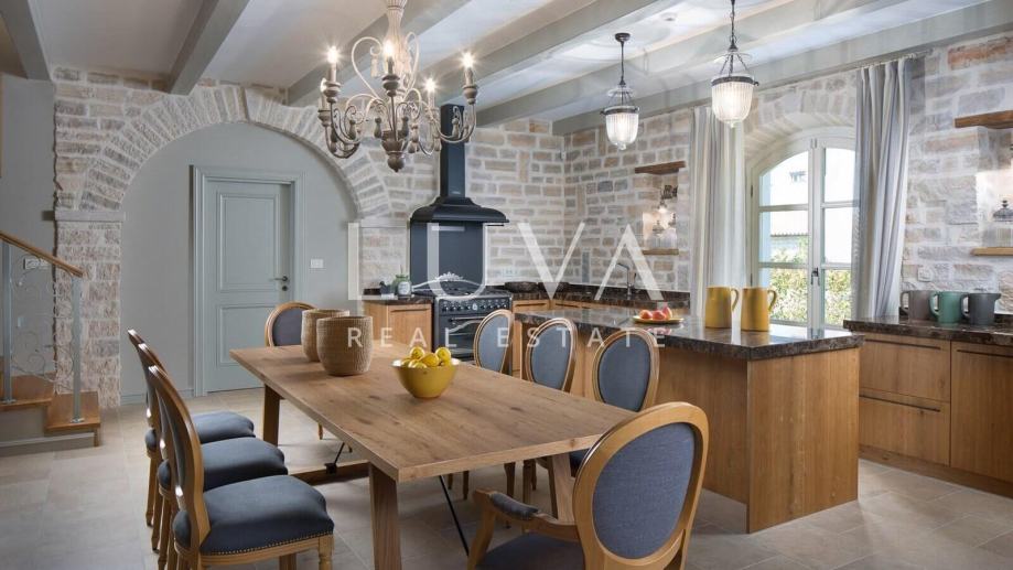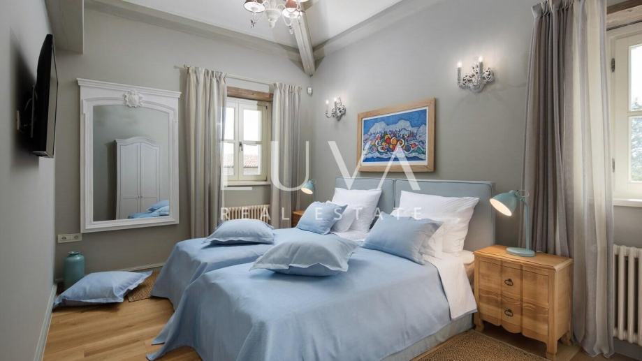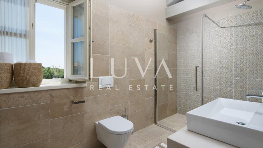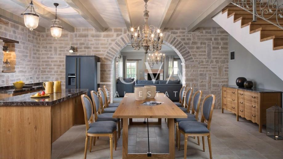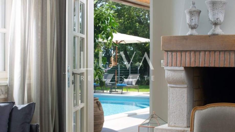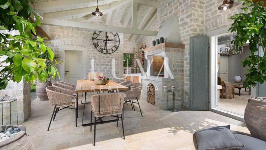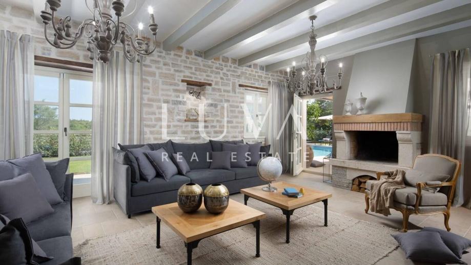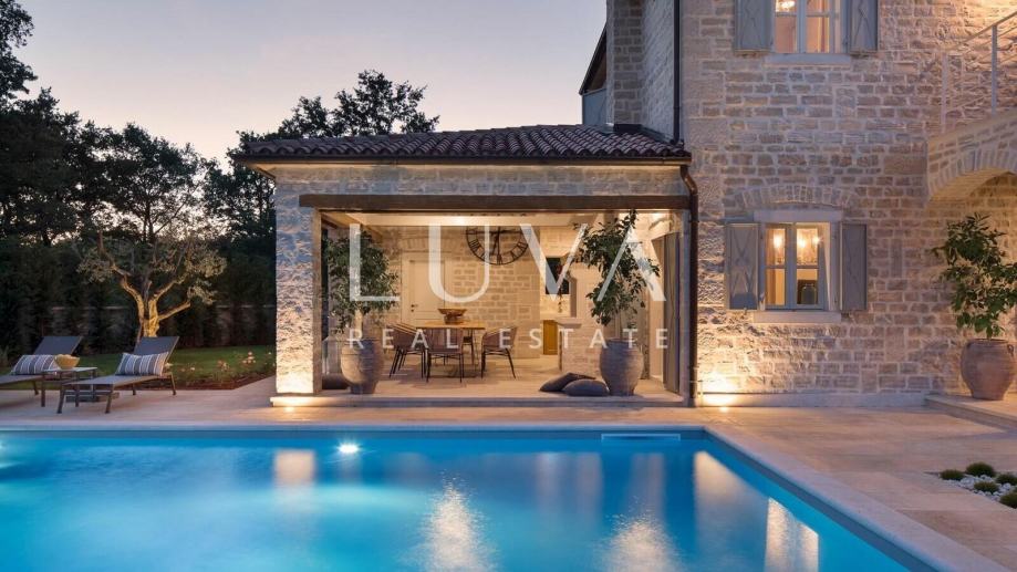 Prodaje se luksuzna vila s bazenom u malom mirnom mjestu Ladići blizu Kanfanara. Kanfanar je odlično prometno povezan s autoputom kroz Istru, a u blizini se nalazi i poznati grad Rovinj. Osim Rovinja, u blizini su poznati gradovi kao što su Poreč, Novigrad i Vrsar. Ova luksuzna vila je izgrađena 2016. godine, površine je 359 m2 i prostire se na 2 etaže. Dio je kompleksa od nekoliko luksuznih vila koje imaju zajedničke sportske terene i igralište za djecu. Vila ja građena u tradicionalnom istarskom stilu u kamenu s kosim krovom s crijepom. Osim eksterijerom i interijerom dominira tradicionalan stil s kamenim zidovima, drvenim gredama i rustikalnim drvenim namještajem. U prizemlju vile se nalazi prostrani dnevni boravak s kaminom koji mu daje dodatni šarm, potpuno opremljena kuhinja s dizajnerskim aparatima te veliki stol za blagovanje. Ispred kuće se nalazi vanjski bazen, a pored njega se nalazi natkrivena terasa s roštiljem i stolom za blagovanje. Vila ima 4 spavaće sobe s vlastitim kupaonicama i prodaje se potpuno namještena i opremljena. Vila je već nekoliko godina u funkciji turističkog najma, a osim ove vile na prodaju su i sestrinske vile pa je moguća kupnja više sestrinskih vila kao investicija u turizam u Hrvatskoj.