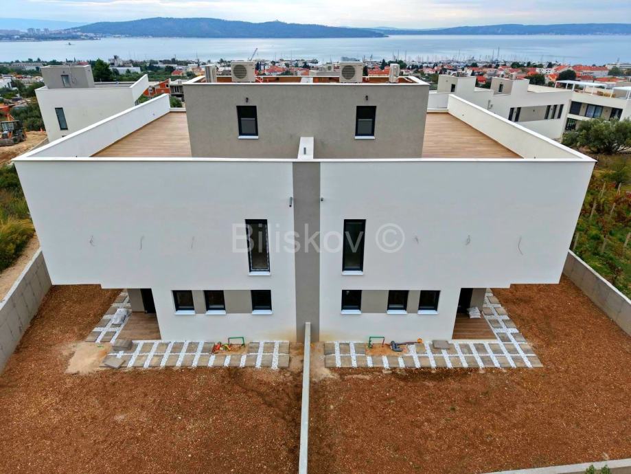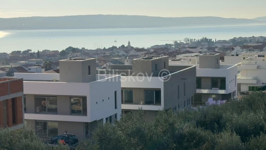 Na prodaju je moderna vila smještena u luksuznom naselju u Kaštel Sućurcu, samo 1,5 km od mora. Zahvaljujući povišenom položaju, vila pruža prekrasan pogled na more, a udaljena je svega nekoliko minuta vožnje od Zračne luke Split.