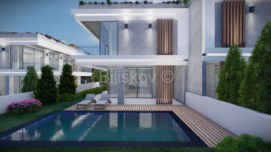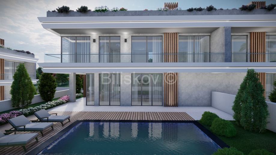 Gradi se na parceli površine 508 m² i okružena je uređenim dvorištem koje odiše elegancijom i skladom. Vila ima ukupnu površinu od 250,56 m², proteže se na dvije etaže, a njezina moderna arhitektura usklađena je s visokim građevinskim standardima te uključuje korištenje vrhunskih materijala. Na krovu se nalazi prostrana terasa površine 62,70 m², osmišljena kao privatni prostor za odmor i uživanje.