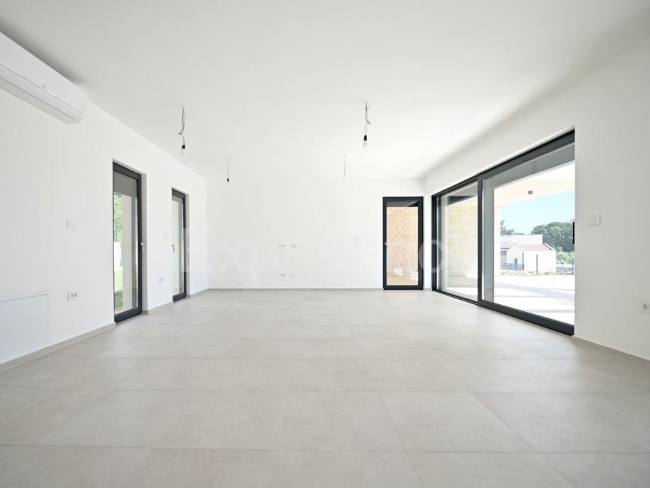 Ukupna neto površina vile iznosi 170 m². Na jednoj etaži prostire se elegantan open-space dnevni prostor s kuhinjom, blagovaonicom i prostranim dnevni boravkom. Veliki stakleni otvori prema jugu otvaraju dnevni prostor prema bazenu i uređenom vrtu, stapajući interijer s eksterijerom.