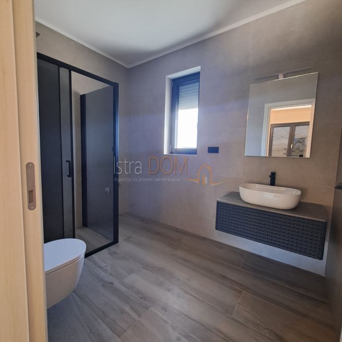 S ukupnom površinom od 218 m², vila se prostire na prizemlju i katu. Svaka prostorija je pažljivo uređena, a antracit stolarija s električnim roletama i komarnicima dodaje sofisticiranost. Klimatizacija u svim sobama i podno grijanje osiguravaju optimalnu udobnost tijekom cijele godine.