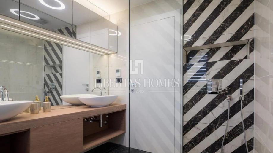 Predstavljamo nekretninu visoke klase kao izvanrednu priliku za one koji žele spojiti luksuz, stil i vrhunsku lokaciju. Vila se prostire na impresivnih 453 četvorna metra kroz dvije etaže, nudeći pet raskošnih spavaćih soba, svaku s pripadajućim garderobnim prostorom, četiri odvojena toaleta te pet luksuznih kupaonica – dvije s prostranim kadama i tri s modernim tuševima.