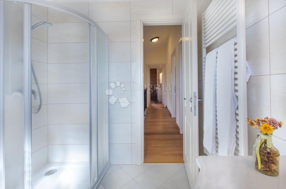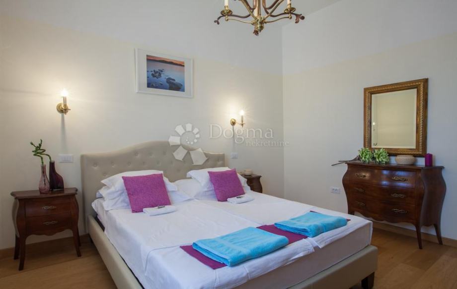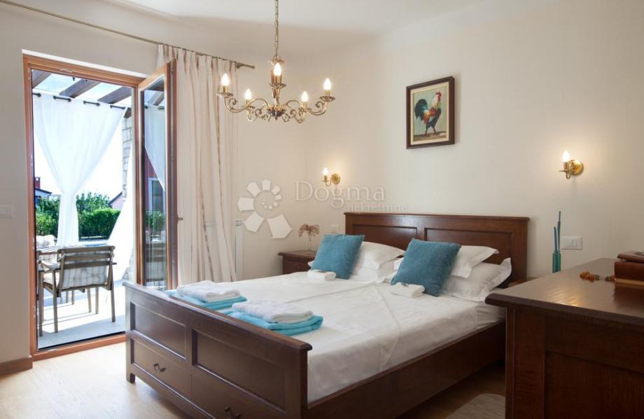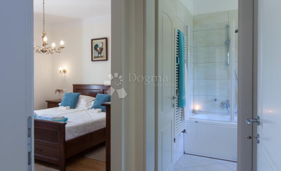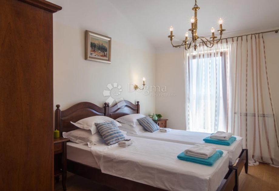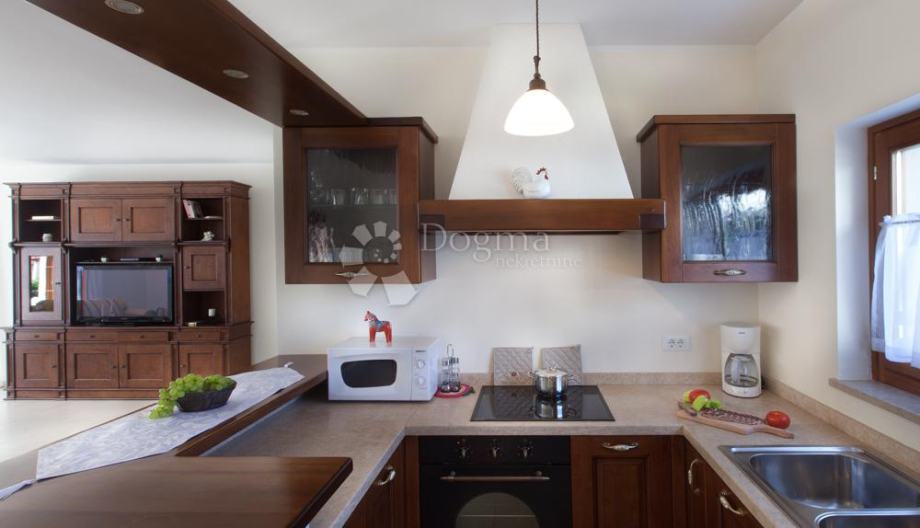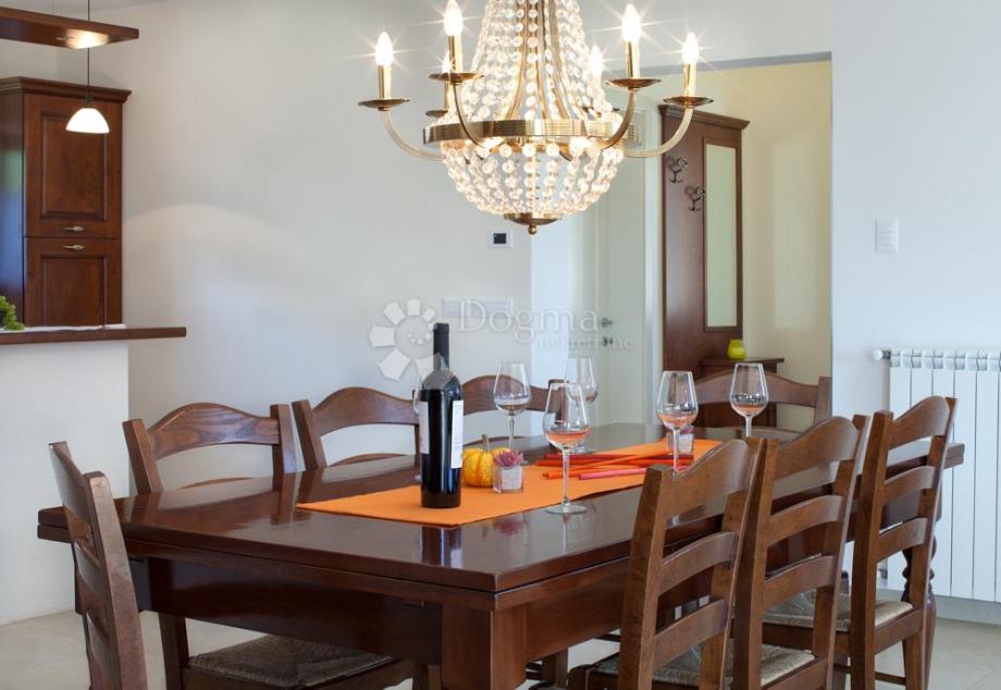 Vila je u potpunosti opremljena i raspolaže sa 4 spavaće sobe, 3 kupaonice, open space kuhinjom, blagovaonicom, dnevni boravkom te spremištem. Na prostranoj i predivno uređenoj okućnici nalazi se bazen veličine 40m2.