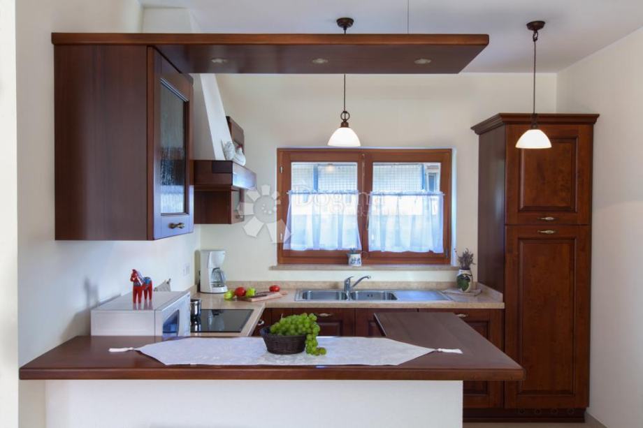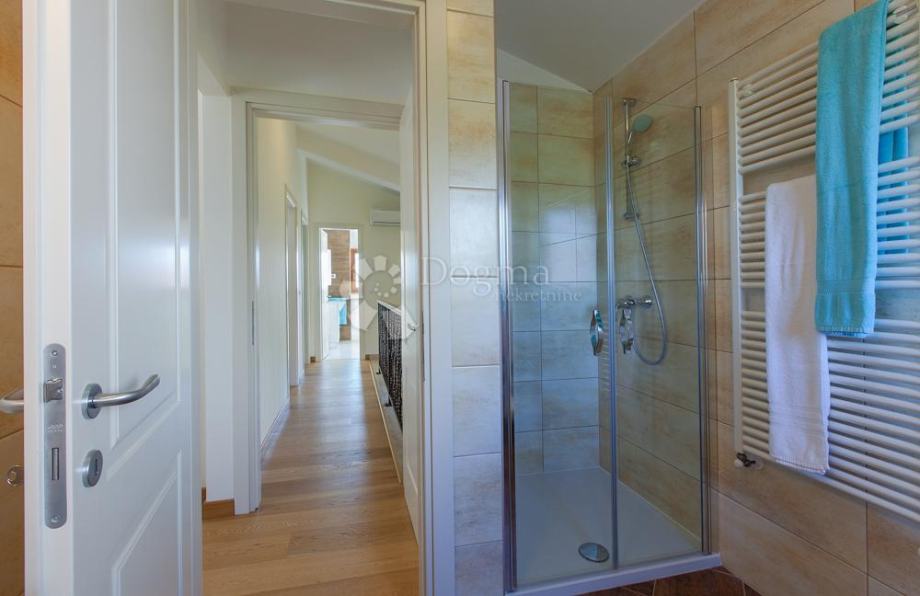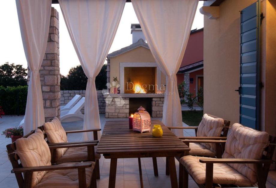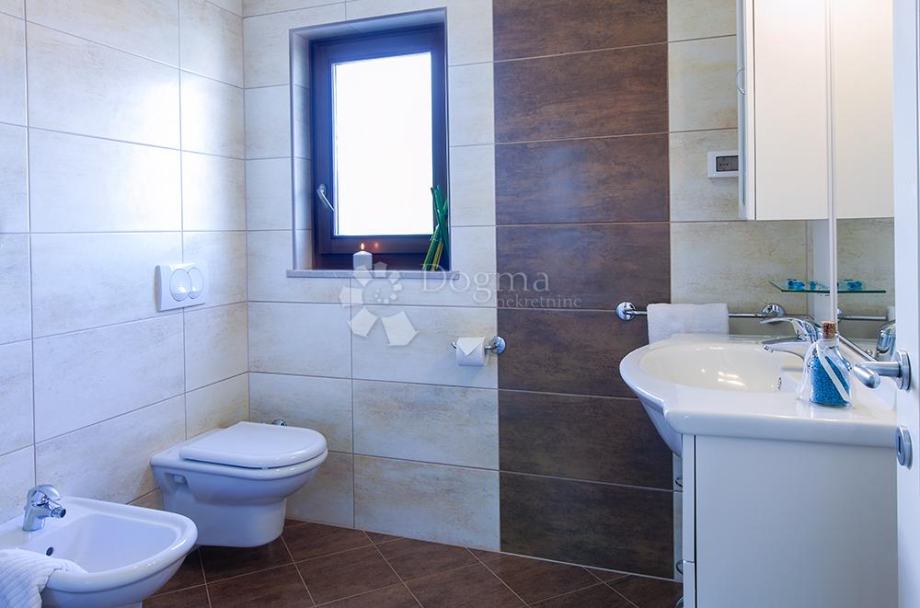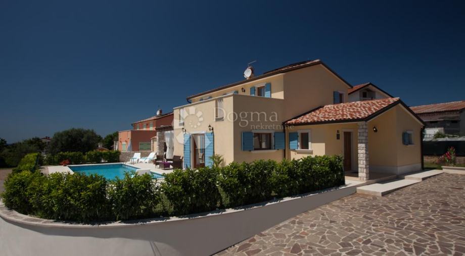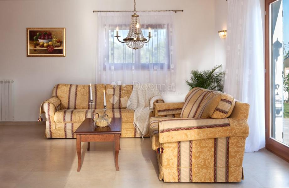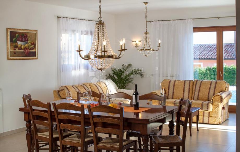 Vila je u potpunosti opremljena i raspolaže sa 4 spavaće sobe, 3 kupaonice, open space kuhinjom, blagovaonicom, dnevni boravkom te spremištem. Na prostranoj i predivno uređenoj okućnici nalazi se bazen veličine 40m2.