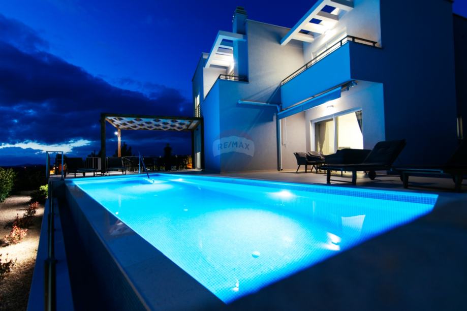 Na mirnoj lokaciji u Brodarici prodaje se namještena luksuzna vila s bazenom površine 225 m2. Vila se sastoji od dva dvoetažna stana te manjeg stana u podrumu.
