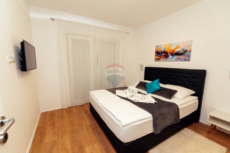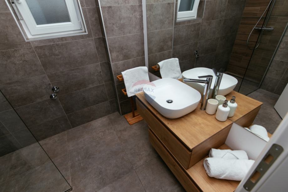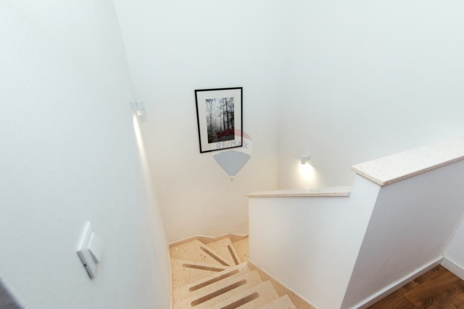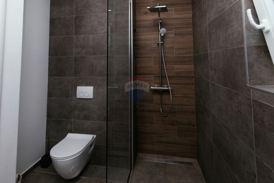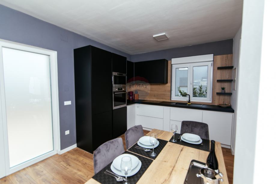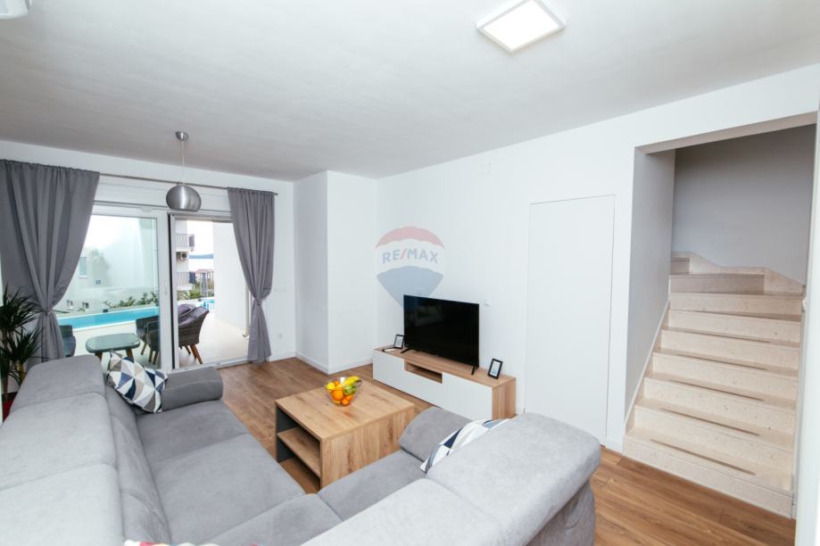 Drugi stan se sastoji od prizemlja u kojem se nalaze kuhinja s blagovaonicom,dnevni boravak, wc i ostava, dok se na katu nalaze dvije sobe i kupaonica.