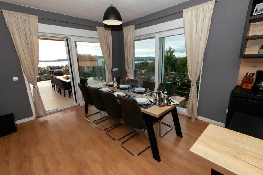Kuća ima hortikulturno održavan vrt s bazenom i roštiljem iz kojeg se pruža predivan pogled na more.