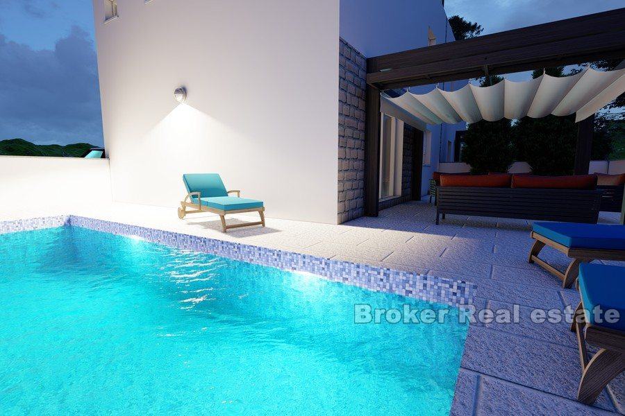 Osim odlične opremljenosti modernog uređenja, vlastitog parkinga, vile upotpunjuju i dvije privatne terase, svaka sa svojim bazenom.