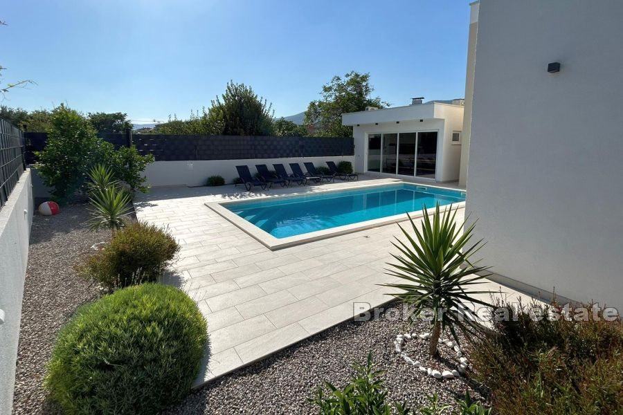 Prodaje se prekrasna novoizgrađena villa u neposrednoj blizini centra Kaštela. Villa se sastoji od 200 m2 ukupne stambene površine, te se prostire na zemljištu od 502 m2.
