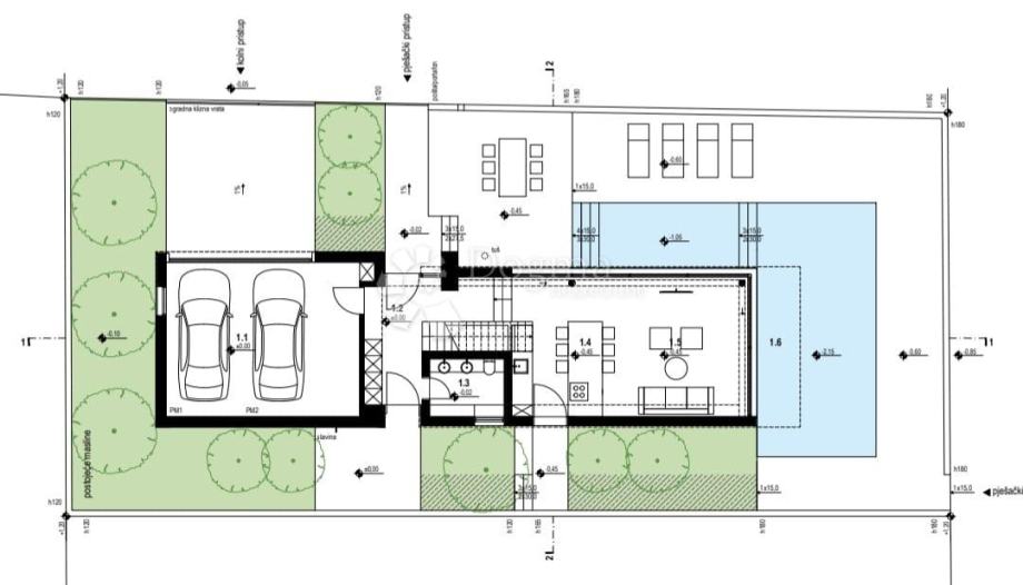 - Grijanje i hlađenje: Podno grijanje na dizalicu topline i klima-uređaji u svim prostorijama osiguravaju ugodnu temperaturu bez obzira na godišnje doba.