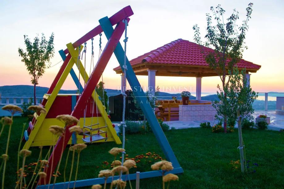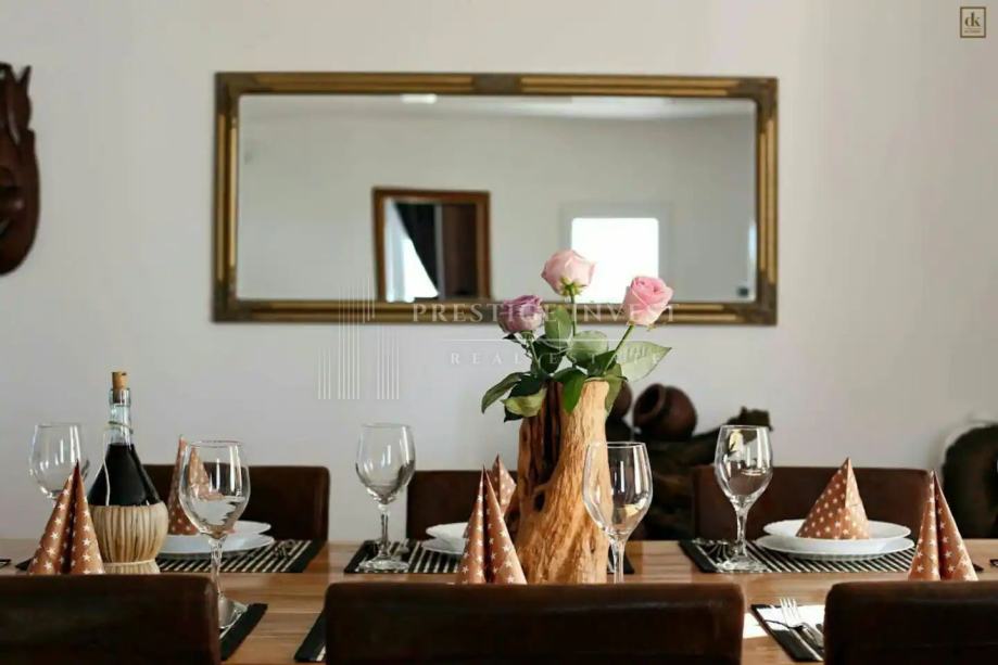 Vila ima šest spavaćih soba, pet kupaonica, 2 wc-a, te prostranu kuhinju i blagovaonicu.