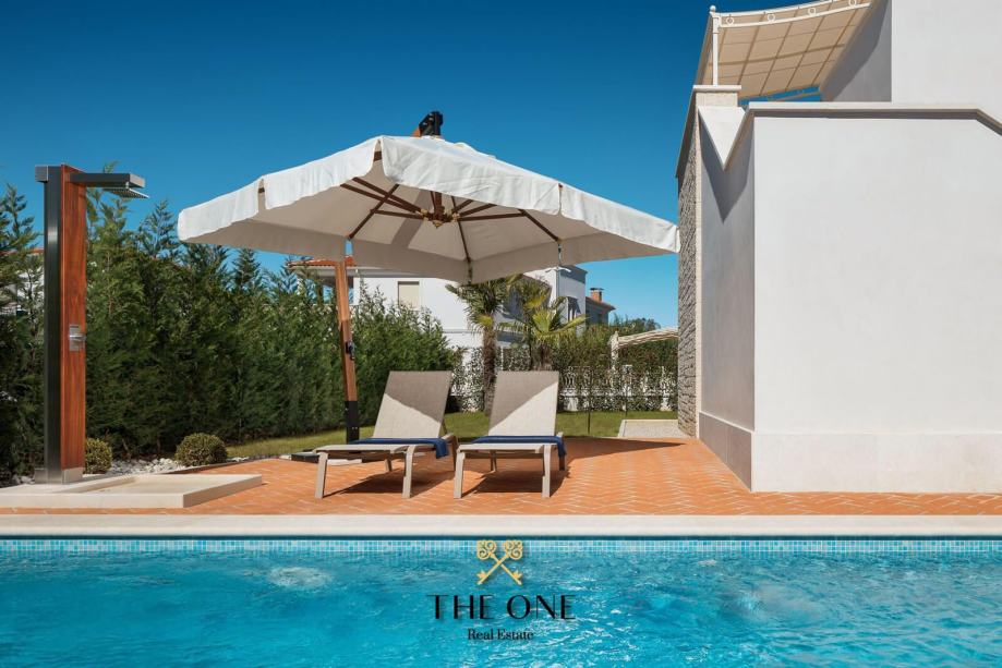 Već prvi pogled na nekretninu govori o visokim estetskim standardima koji su poštivani pri gradnji i opremanju vile. Prekrasan uređeni vrt, impresivan bazen sa sunčalištem, kao i vanjska blagovaonica s roštiljem savršeno upotpunjuju elegantnu vilu.