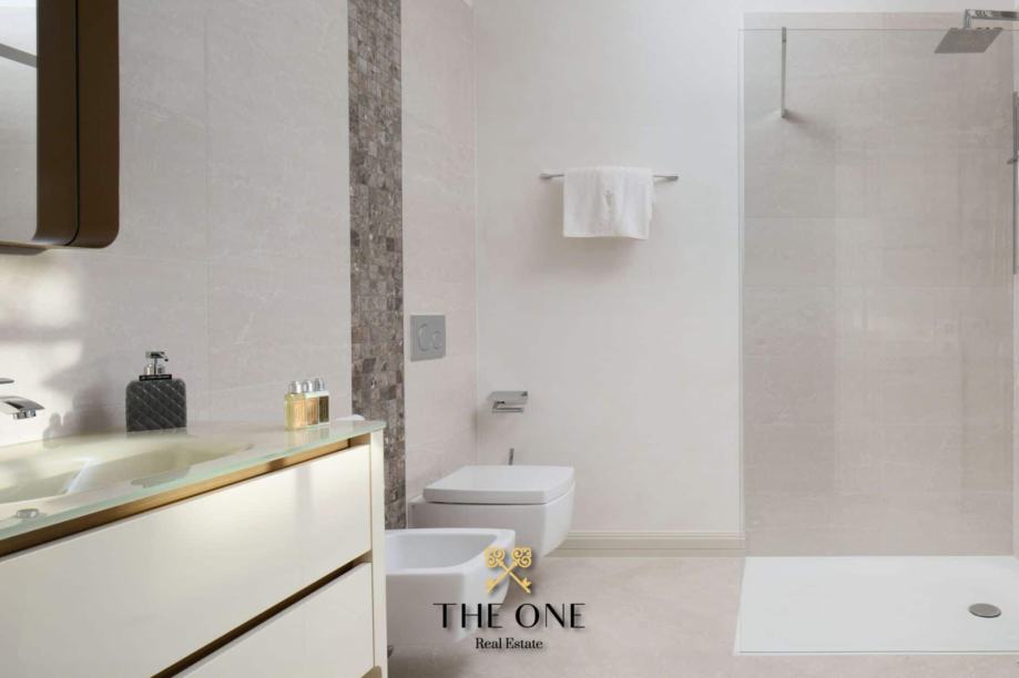 Nadalje, tu je spavaća soba s kupaonicom, ostava i elegantno stubište za prvi kat. Na prvom katu su tri spavaće sobe, svaka sa kupaonicom. Jedna soba ima prekrasnu pergolu sa stepenicama do bazena, dok druge dvije imaju balkone. Tu je i velika terasa sa sunčalištem, odnosno lounge dio s otvorenim pogledom na more.