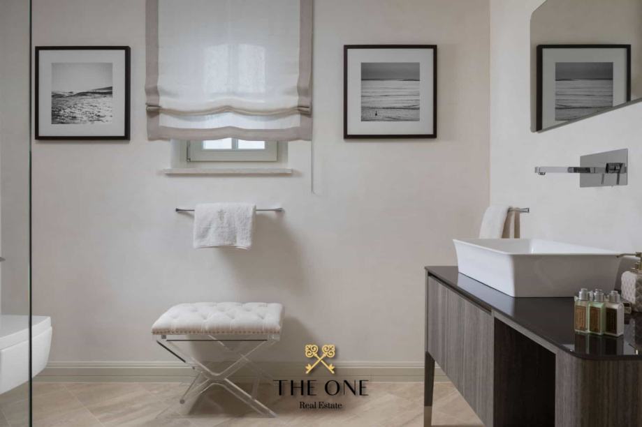 Interijer vile je vrlo profinjen, luksuzni detalji pomno odabrani, svijetle boje koje prevladavaju u interijeru s velikim staklenim površinama doprinose obilju dnevne svjetlosti kojom je vila ispunjena.