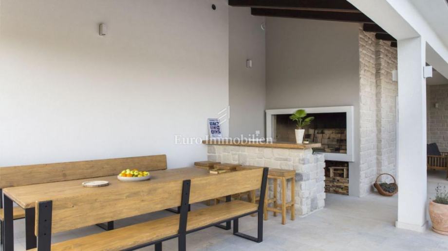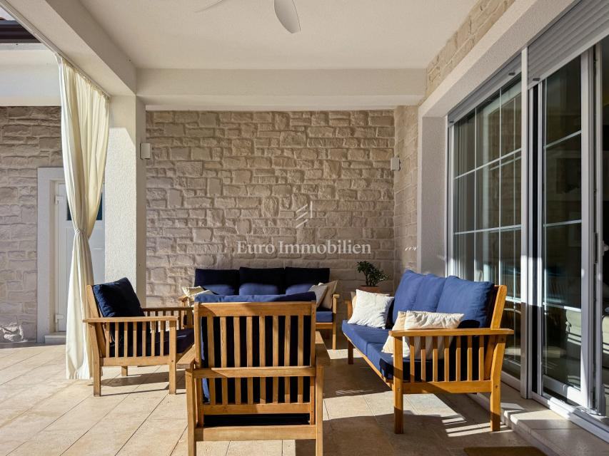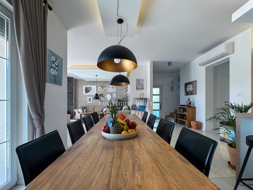 U mirnom mjestu nadomak mora, smjestila se elegantna vila ukupne površine 240 m², s uređenom okućnicom površine 926 m². Ova nekretnina predstavlja savršen spoj suvremenog dizajna, luksuzne opreme i udobnosti, idealna za stanovanje ili turistički najam.
