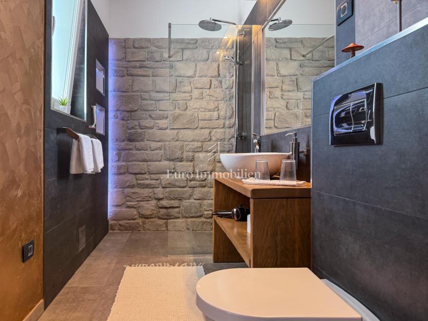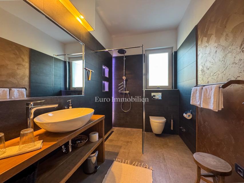 Posebna prednost je wellness zona s direktnim pristupom s terase, koja uključuje saunu, tuš, toalet i grijani Laconium.