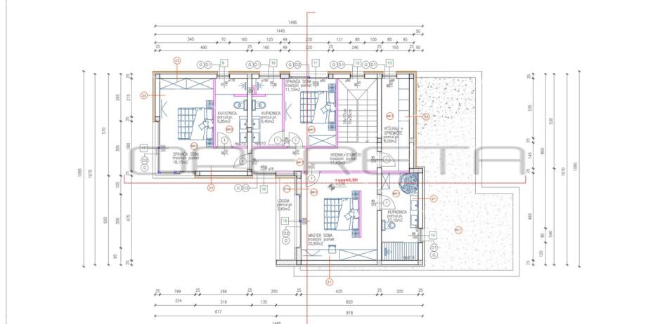 • Master spavaća soba (20,80 m²) s vlastitom kupaonicom (10,10 m²) i izlazom na lođu (3,40 m²)