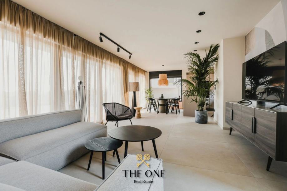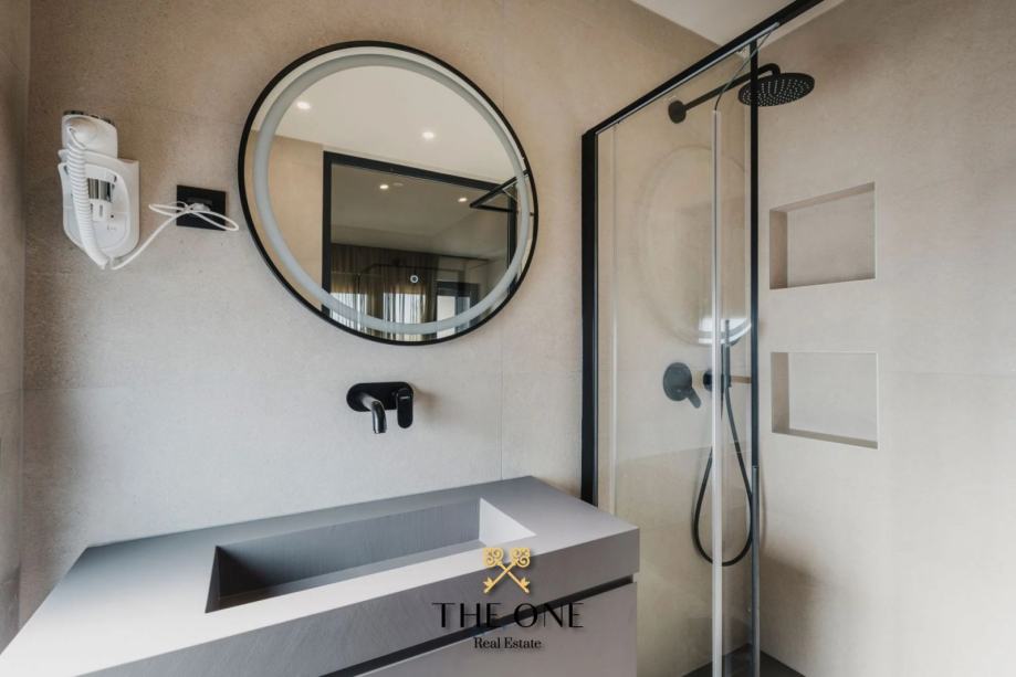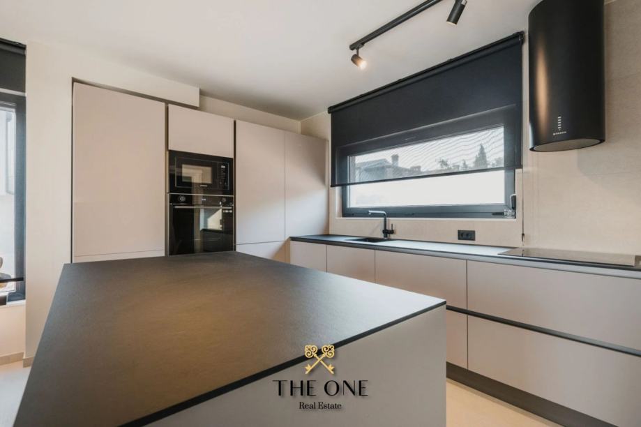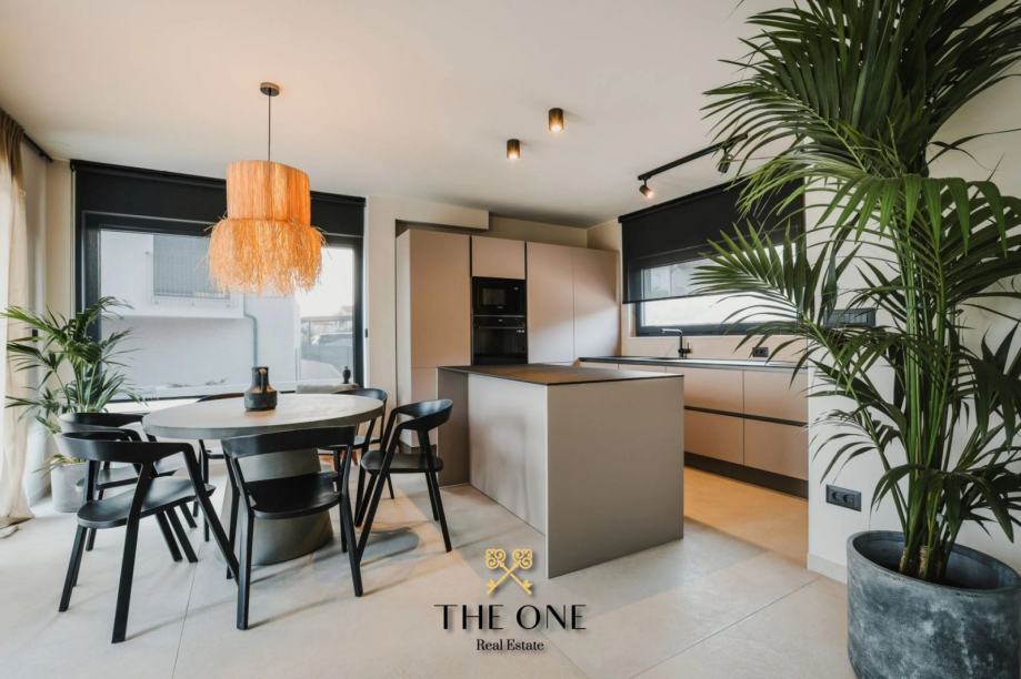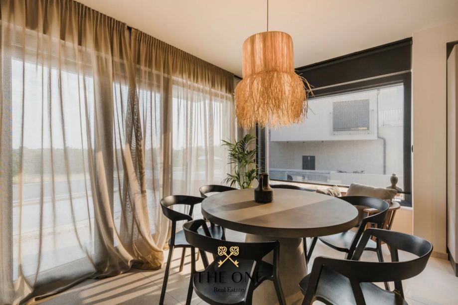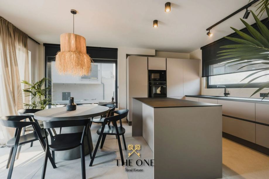 Ova impozantna vila nalazi se na parceli od 601 m2 i proteže se na dvije etaže, prizemlje i prvi kat. U prizemlju vile nalazi se ulazni hodnik koji vodi u otvoreni koncept koji se sastoji od kuhinje s blagovaonicom i prostranog dnevnog boravka s izravnim izlazom na natkrivenu terasu s prekrasnim pogledom. Na terasi se nalazi ljetna kuhinja, dnevni boravak i jacuzzi. Odmah ispod nalazi se bazen okružen prostranim sunčalištem. Na istom katu je smještena jedna spavaća soba i zasebni toalet.