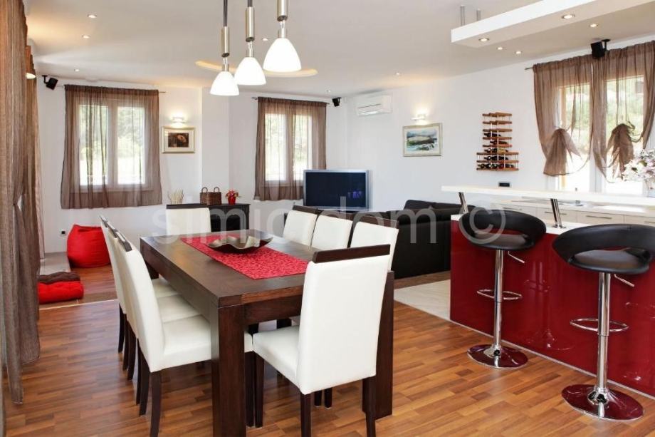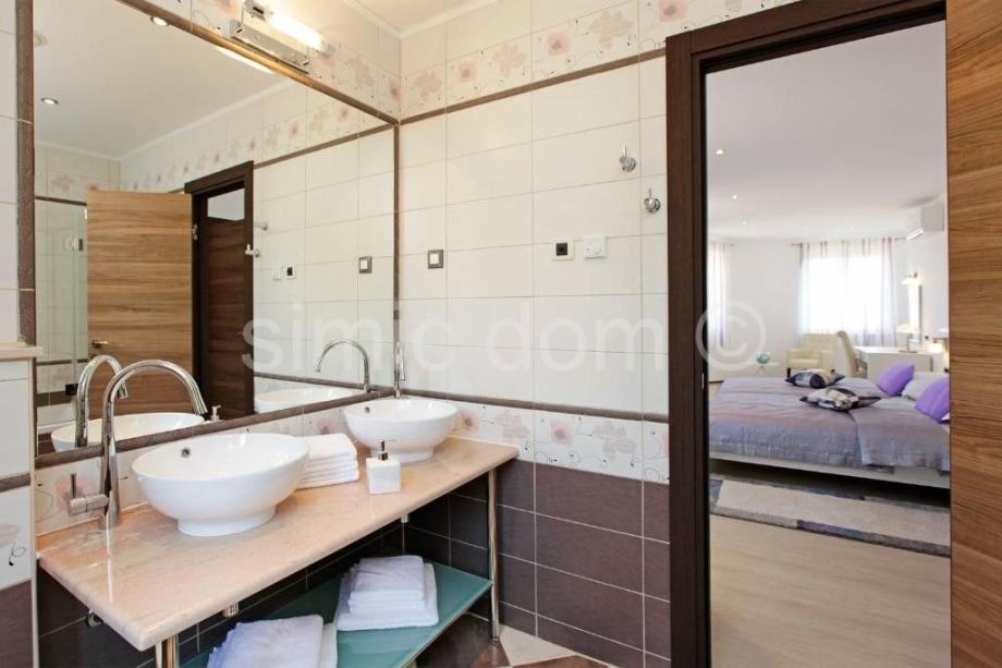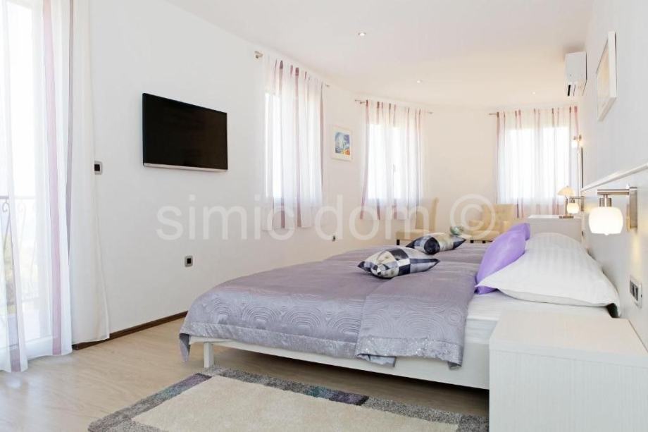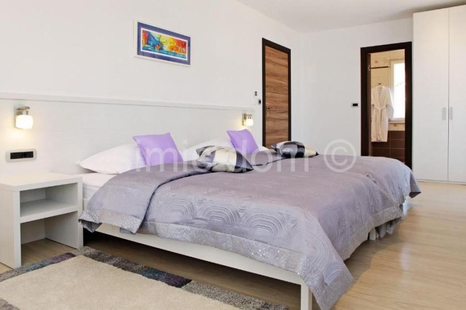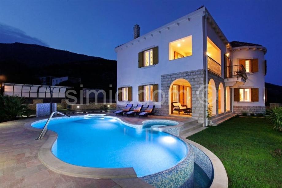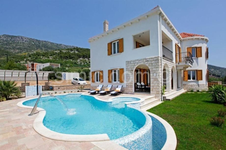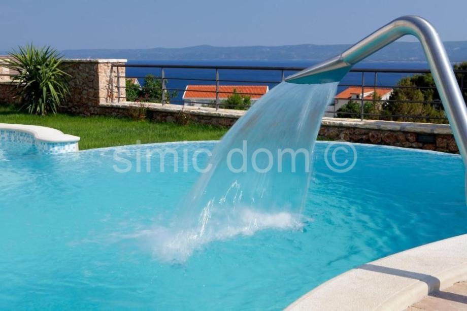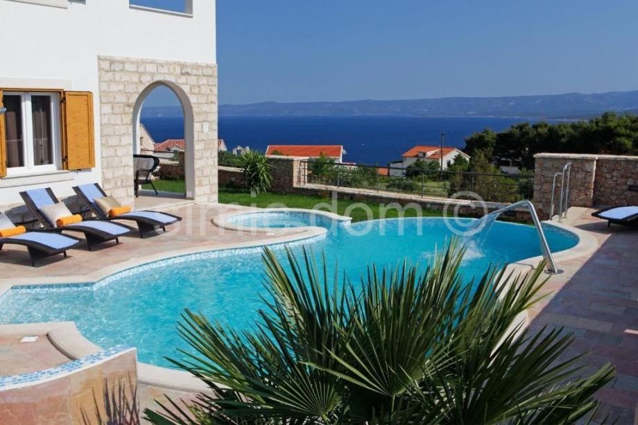 Prodaje se lijepa, luksuzna vila u Bolu na otoku Braču. Vila površine iznosi 242 m2 je izgrađena na parceli površine 542 m2. Kuća se sastoji od prizemlja i jednog kata. U prizemlju se nalazi dnevni prostor otvorenog rasporeda s dnevnim boravkom, kuhinjom i blagovaonicom odakle se izlazi na divnu natkrivenu terasu od 22 m2, a na ovoj etaži nalazi se još i hodnik, WC, fitness soba u kojoj je i sauna, ostava te jedna spavaća soba s vlastitom kupaonicom. Unutarnjim stubama dolazi se na prvi kat koji sadrži predsoblje te još tri spavaće sobe s vlastitim kupaonicama i lođom/balkonima. Okućnica uključuje bazen od 33 m2 koji ima i mogućnost hidromasaže, terasu za sunčanje, vanjsku blagovaonicu s roštiljem, vanjski tuš te veliku zelenu površinu uz popločani i natkriveni parking za dva automobila. Lokacija je idealna za miran boravak uz divan pogled na more. Na prodaju je i građevinsko zemljište od 715 m2 koje se nalazi odmah iza ove nekretnine, cijena 286.000€.