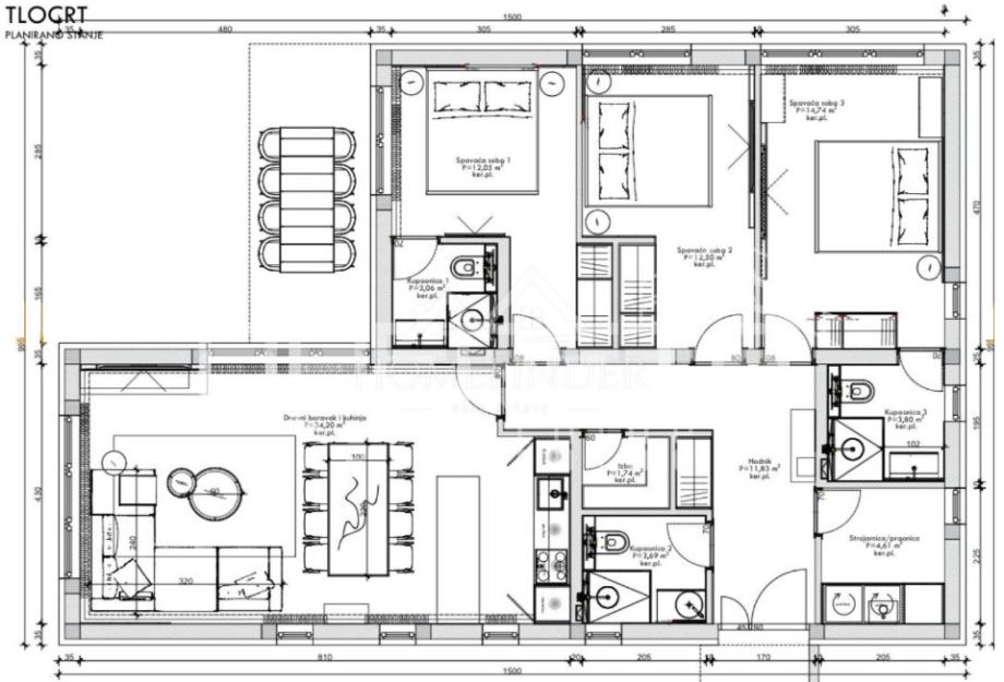 Prostrani dnevni boravak s kuhinjom i blagovaonicom – 35 m²
