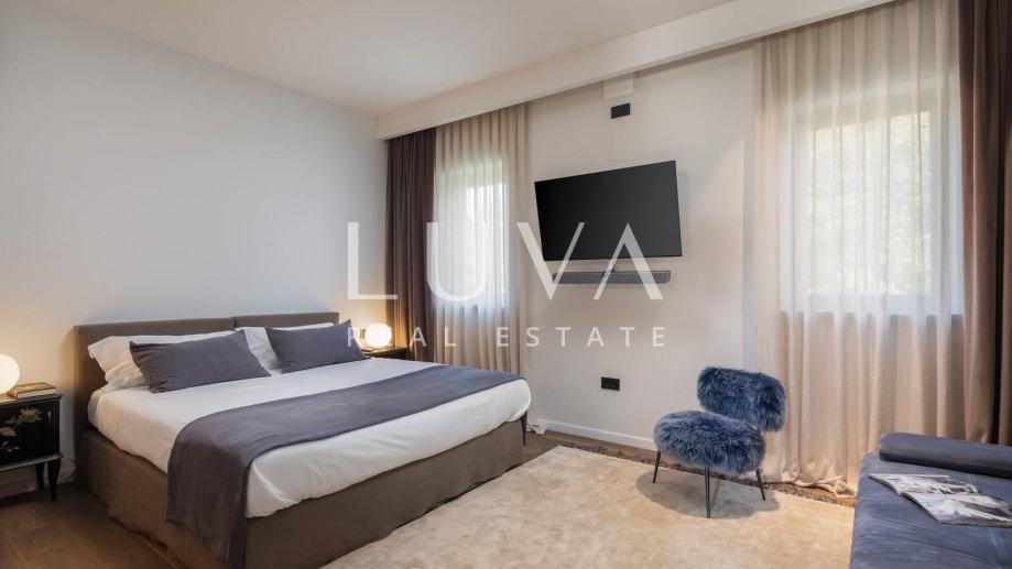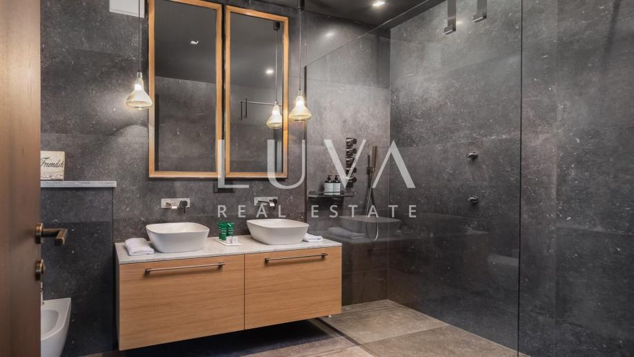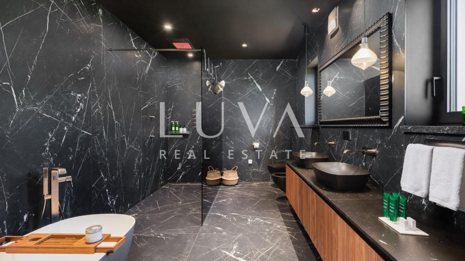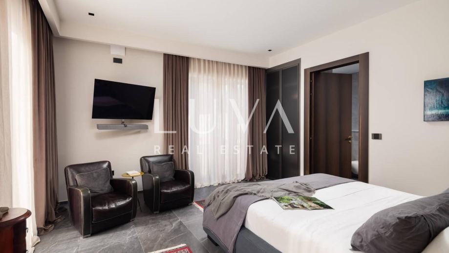 Vila je površine 450 m2, a osim dnevnog boravka ima 4 spavaće sobe od kojih svaka ima vlastitu kupaonicu. Također, vila ima mnogo dodatnih sadržaja pa tako osim tenis terena i bazena ima i Jacuzzi, saunu i sprave za vježbanje. Vila je trenutno u funkciji turističkog najma te može biti dobra prilika i kao investicija u turizam.